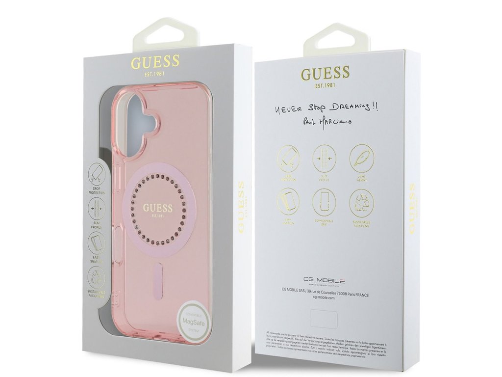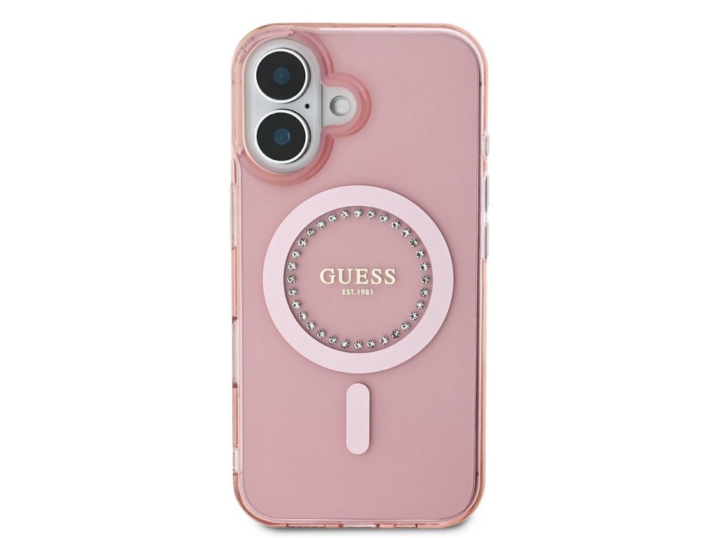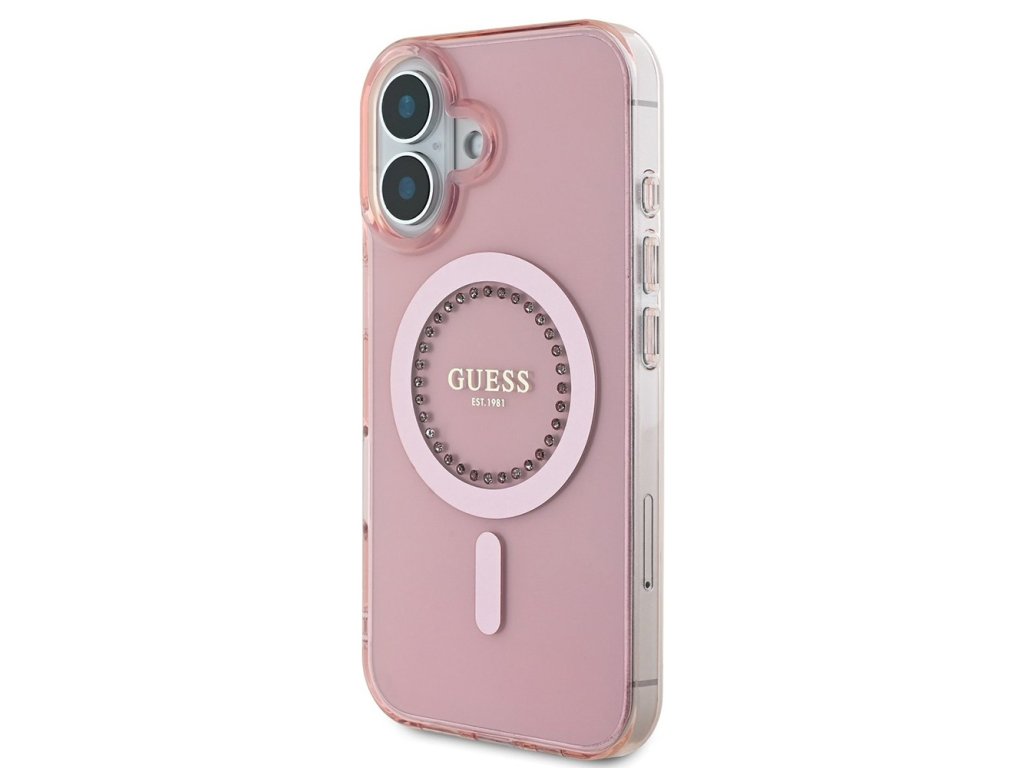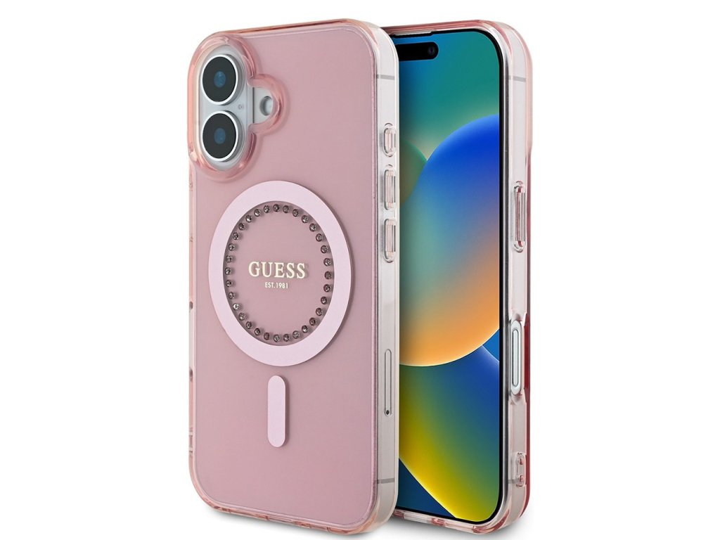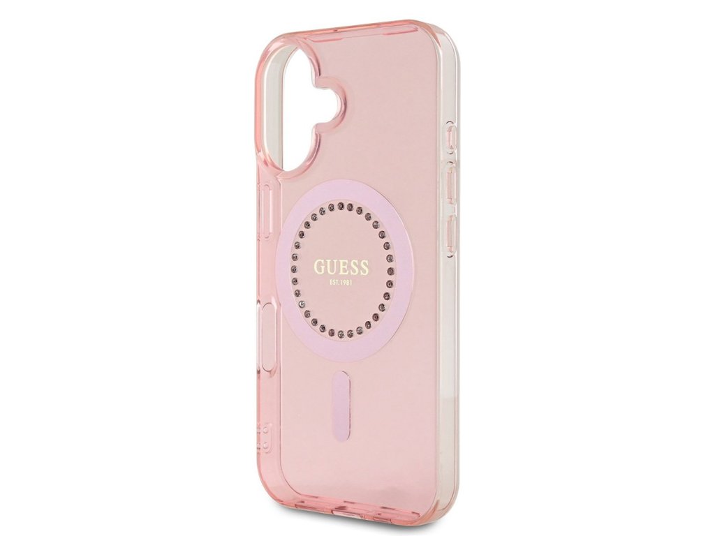 Guess IML kryt s kamínky a MagSafe na iPhone 16 (GUHMP16SPFTDTEP) - růžový