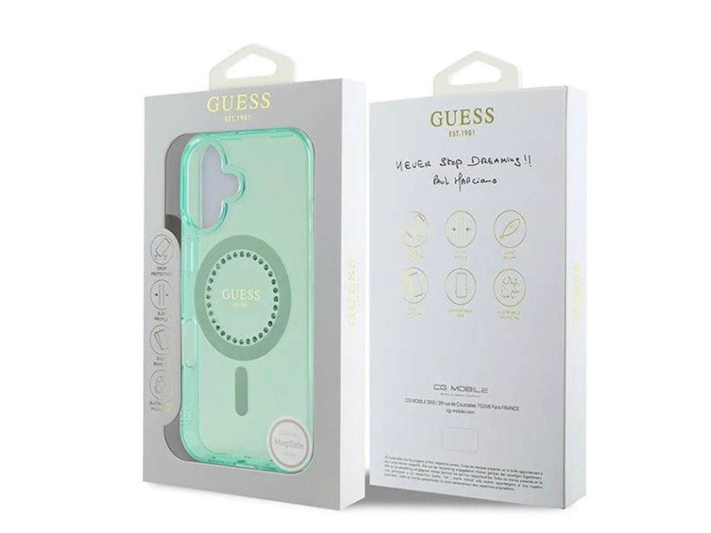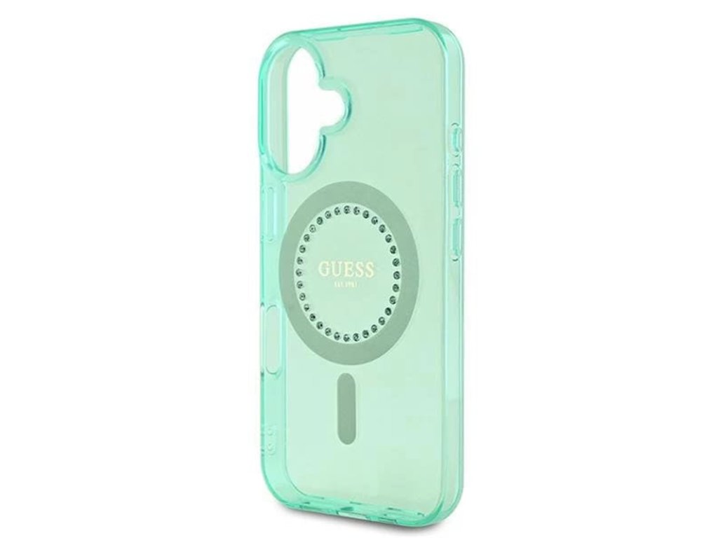 Guess IML kryt s kamínky a MagSafe na iPhone 16 Plus (GUHMP16MPFTDTEN) - zelený
