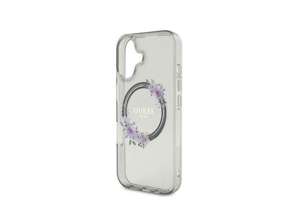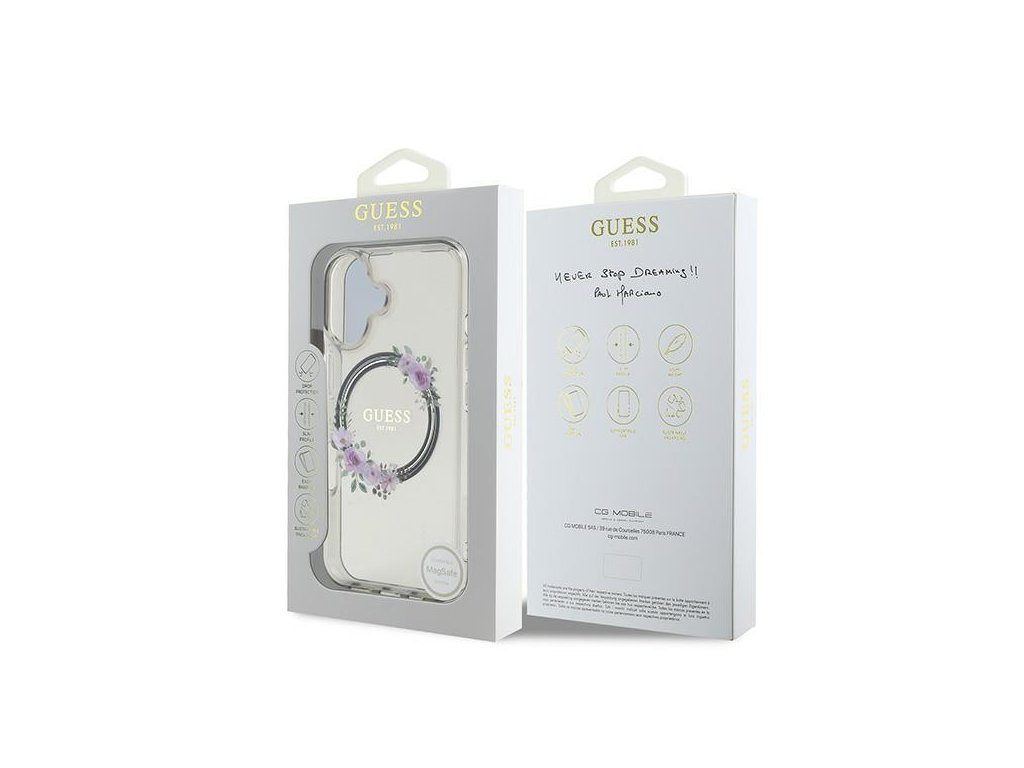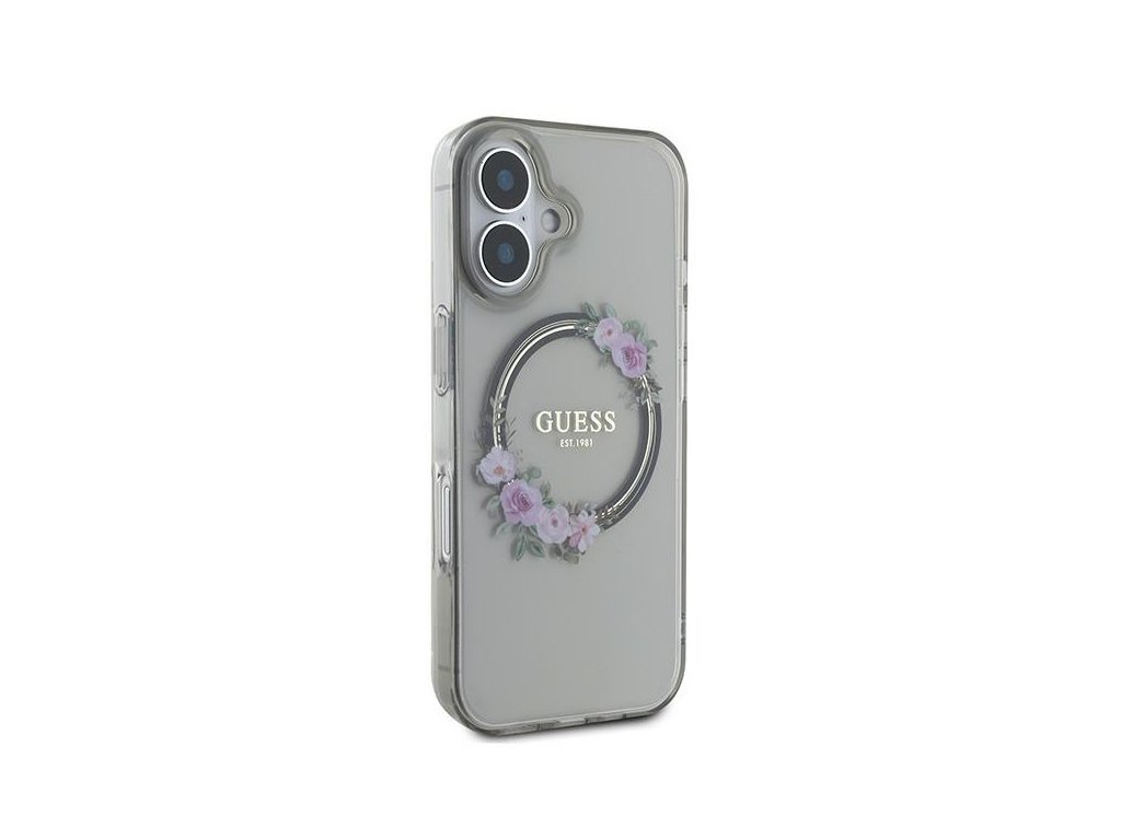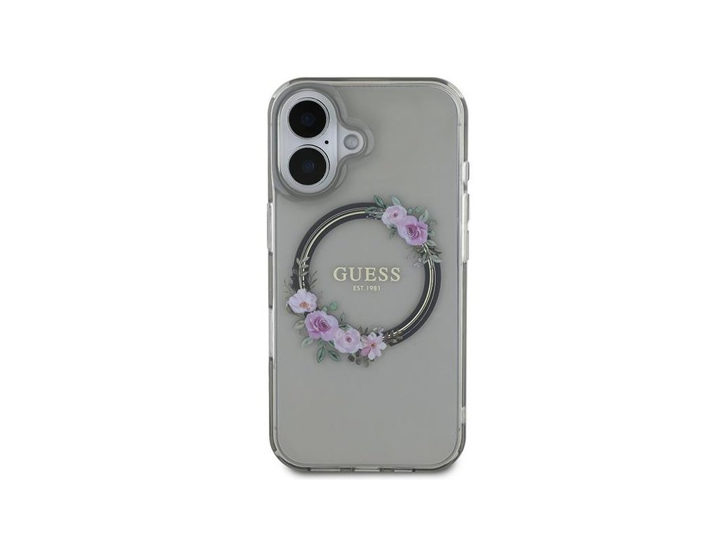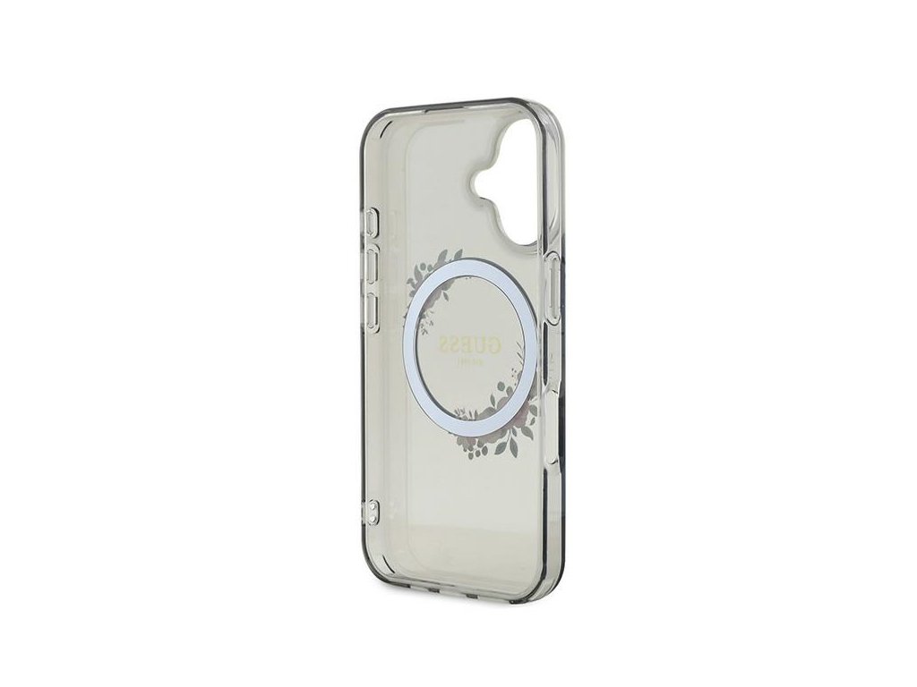 Guess IML květinový kryt s věnečkem a MagSafe na iPhone 16 (GUHMP16SHFWFCK) - černý