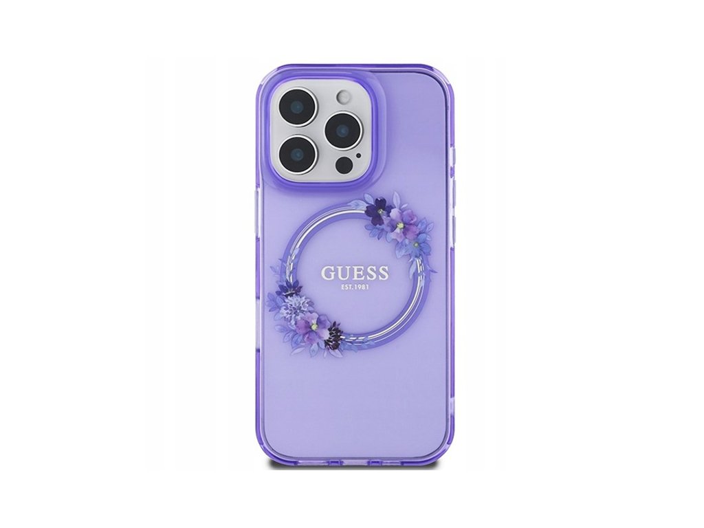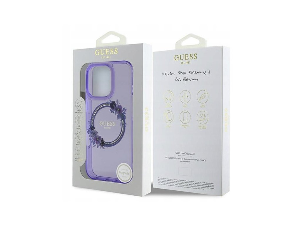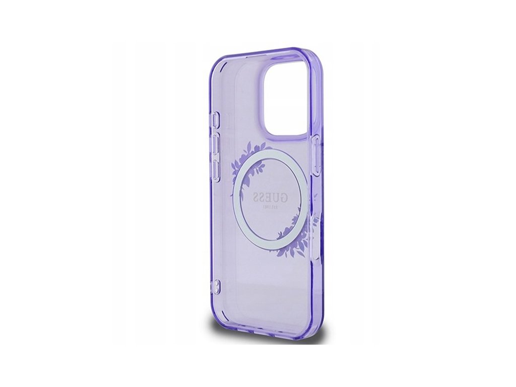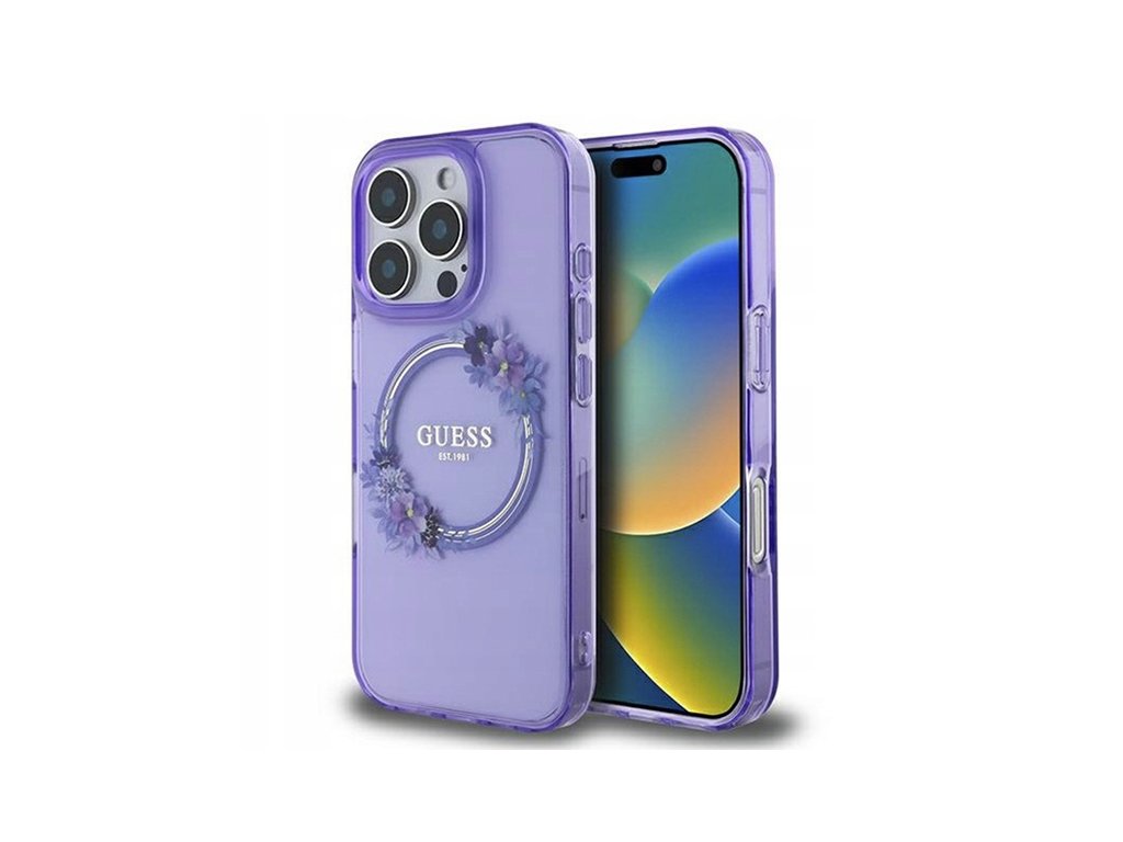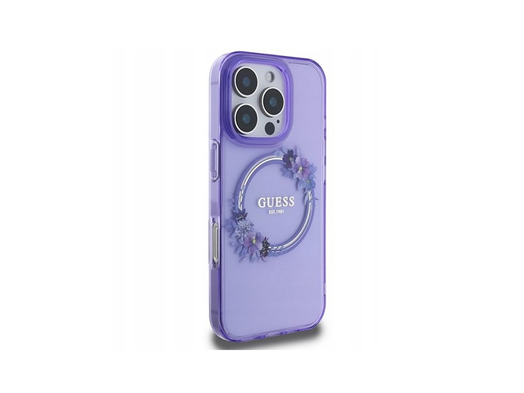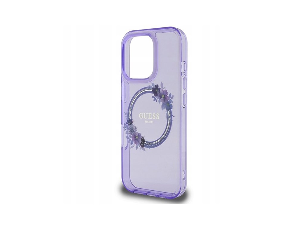 Guess IML květinový kryt s věnečkem a MagSafe na iPhone 16 Pro (GUHMP16LHFWFCU) - fialový