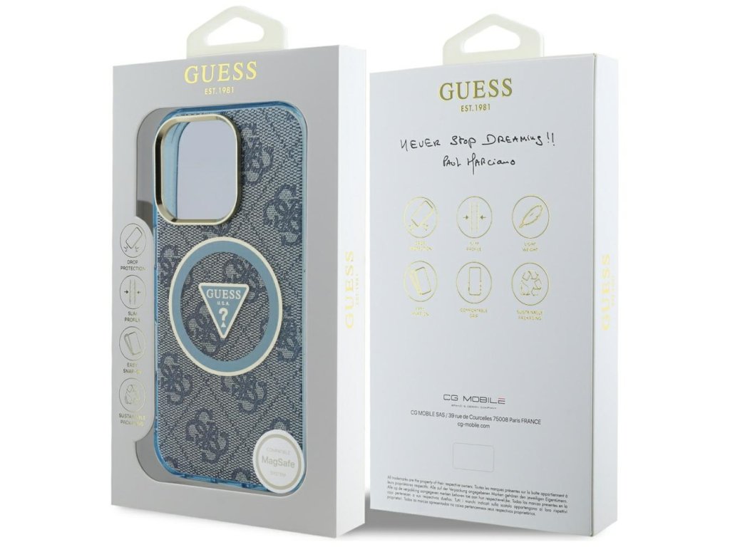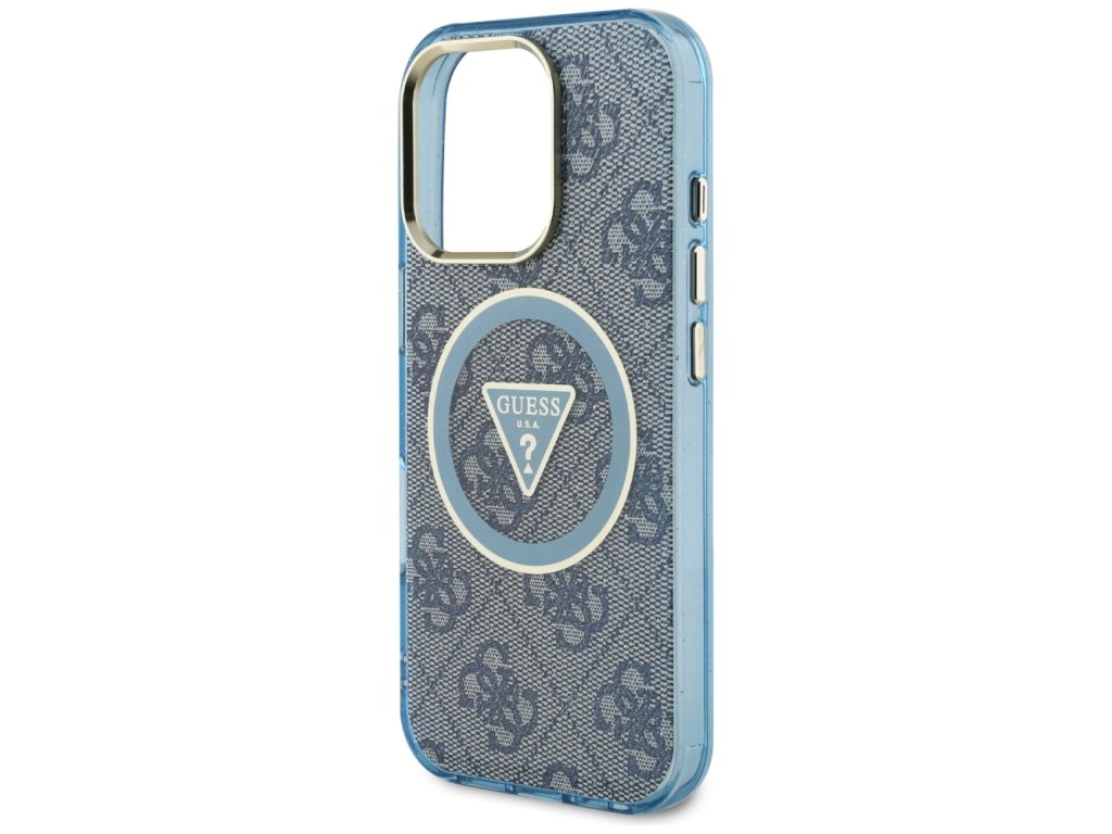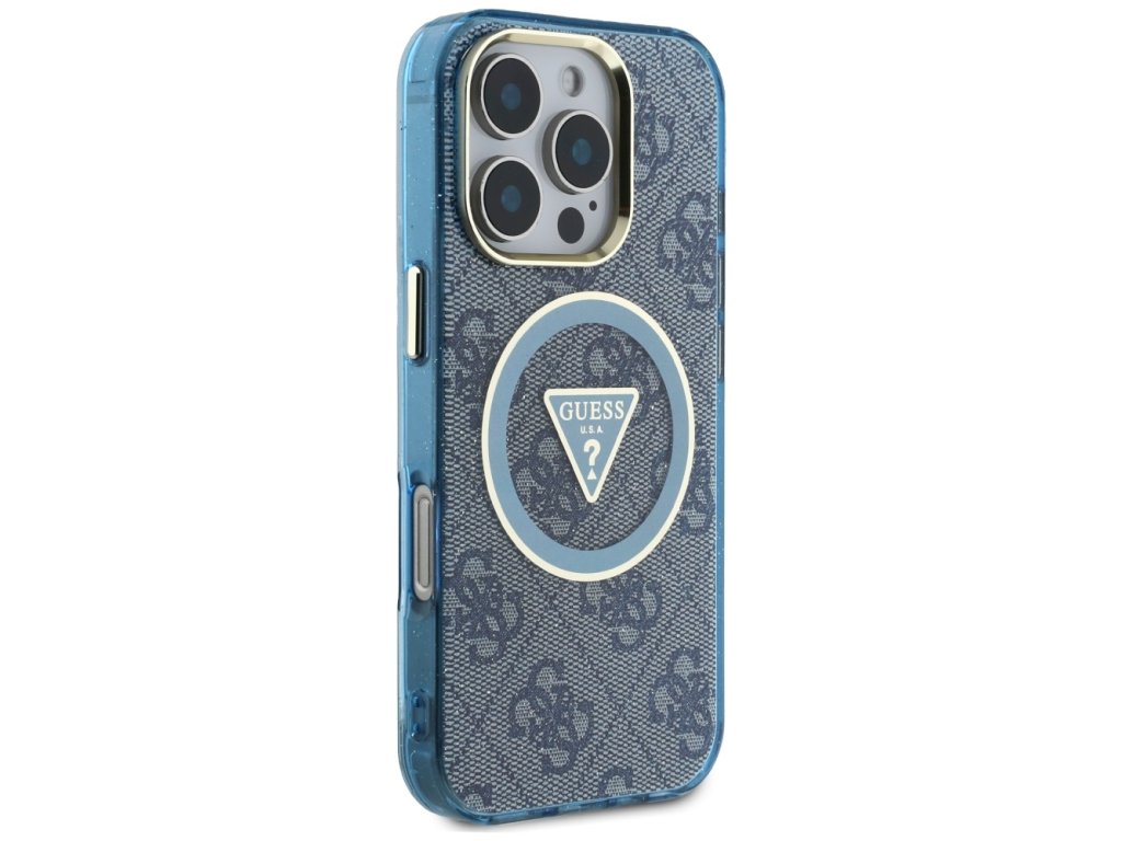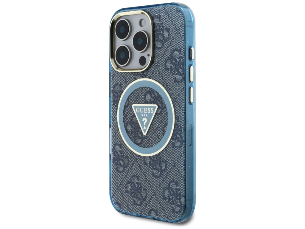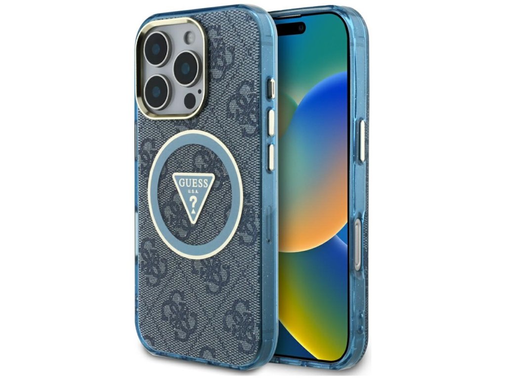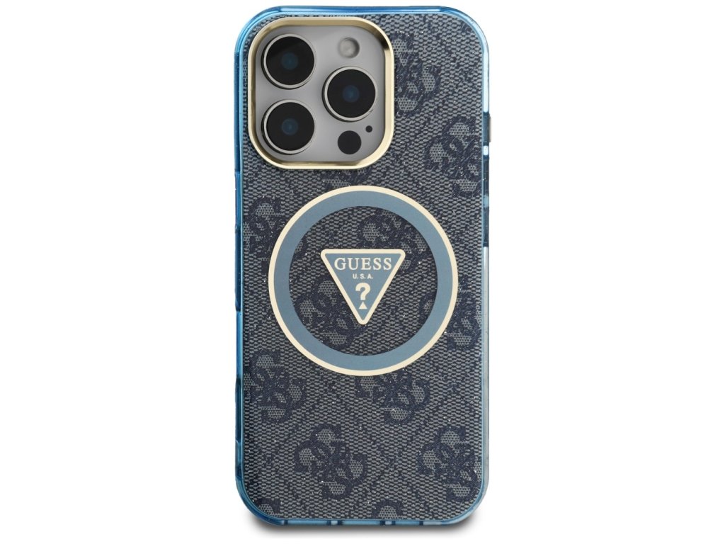 Guess - IML Metal Glitter 4G Circle Triangle MagSafe obal na iPhone 16 Pro - modrý