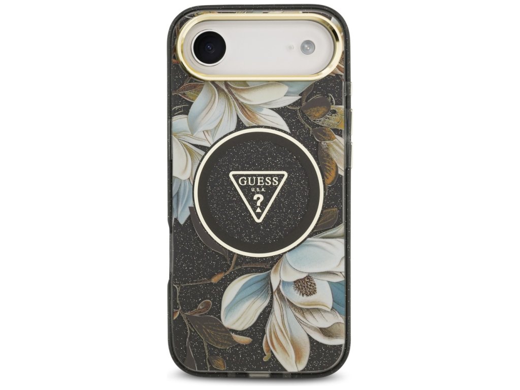 Guess - IML Metal Glitter Flowers Triangle MagSafe pouzdro pro iPhone 17 Air - černé