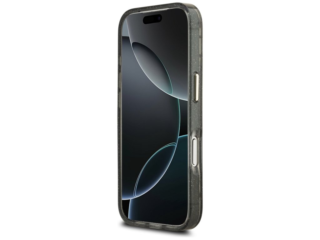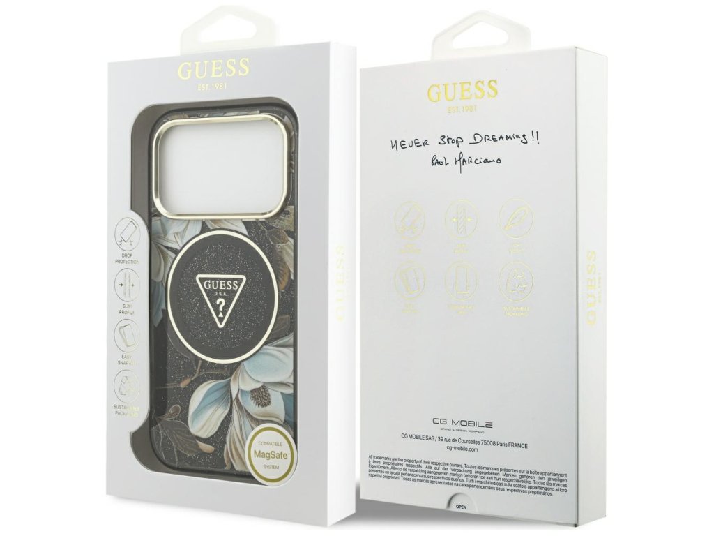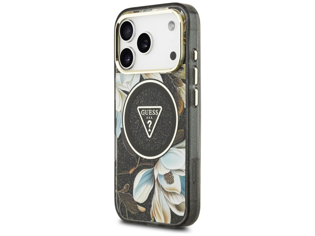 Guess - IML Metal Glitter Flowers Triangle MagSafe pouzdro pro iPhone 17 Pro - černé