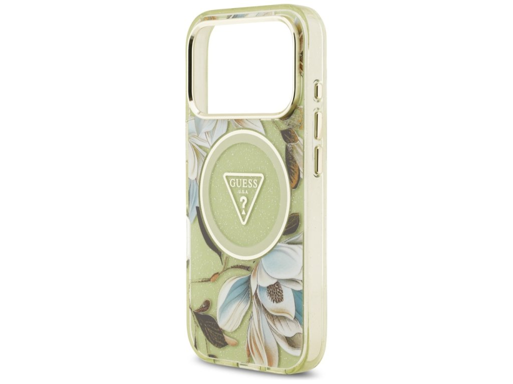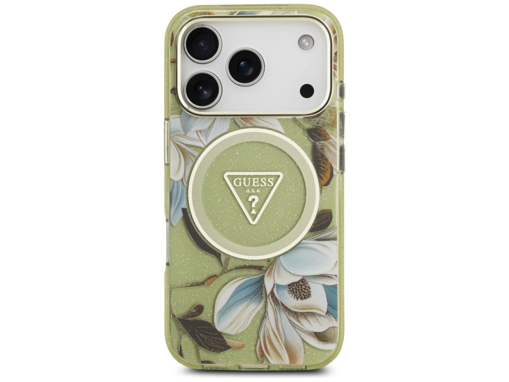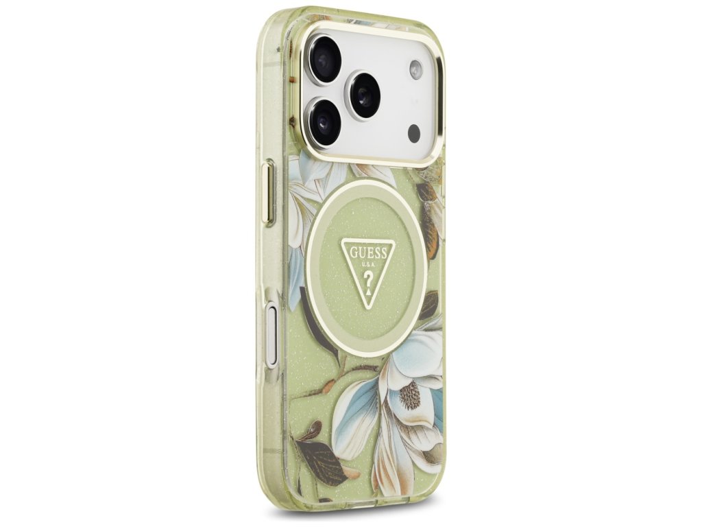 Guess - IML Metal Glitter Flowers Triangle MagSafe pouzdro pro iPhone 17 Pro Max - zelené