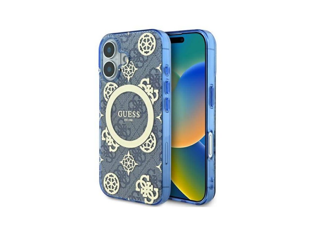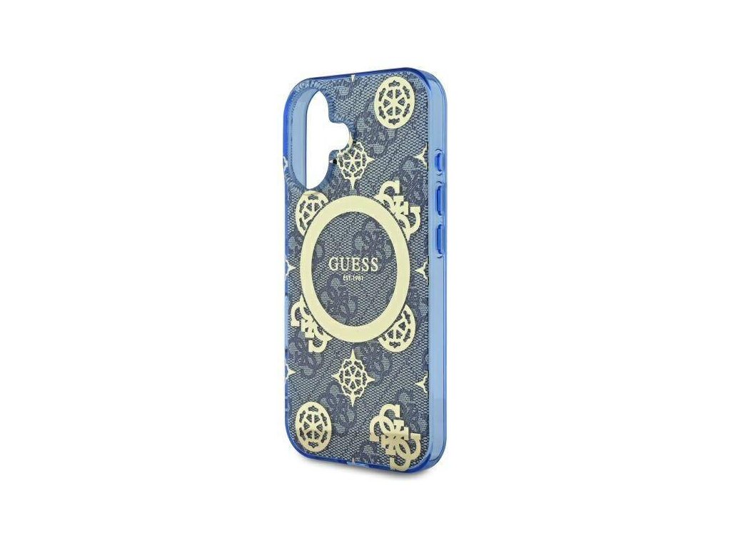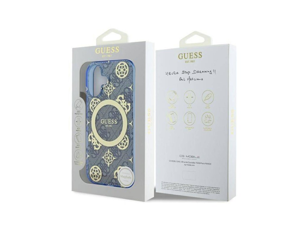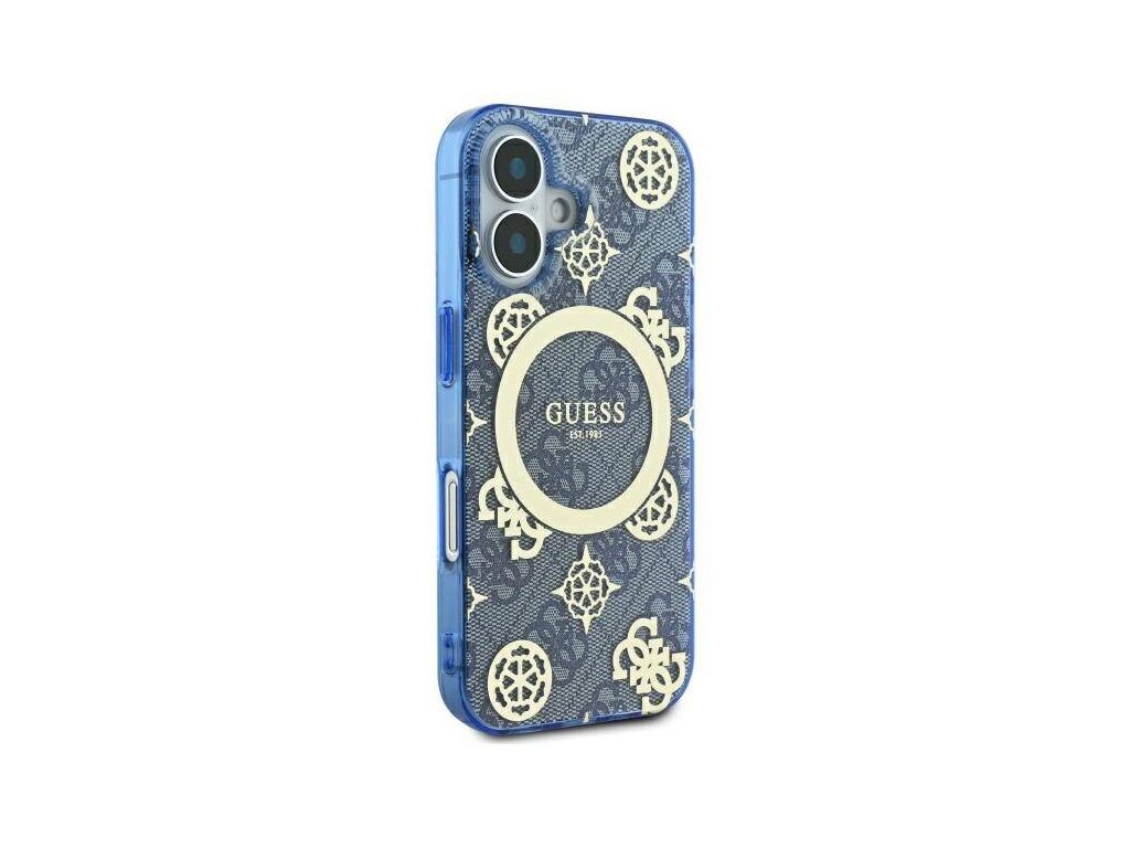 Guess IML pivoňkový kryt na 4G pozadí s MagSafe na iPhone 16 (GUHMP16SH4PYEEB) - modrý