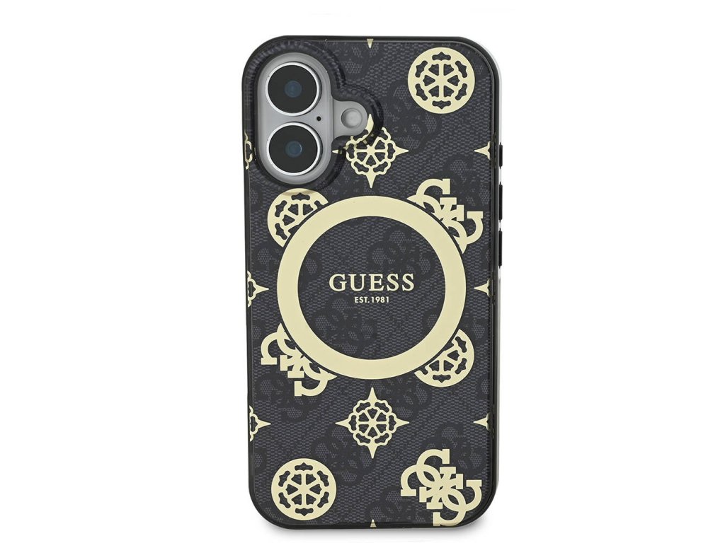 Guess IML pivoňkový kryt na 4G pozadí s MagSafe na iPhone 16 (GUHMP16SH4PYEEK) - černý