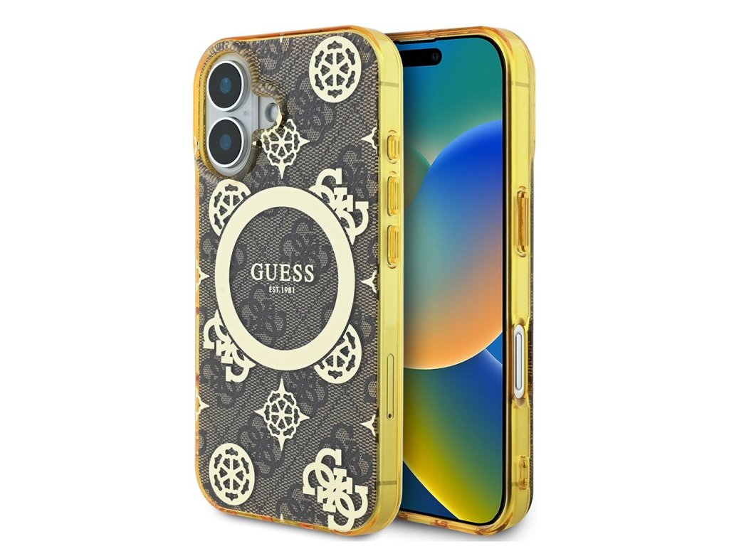 Guess IML pivoňkový kryt na 4G pozadí s MagSafe na iPhone 16 (GUHMP16SH4PYEEW) - hnědý