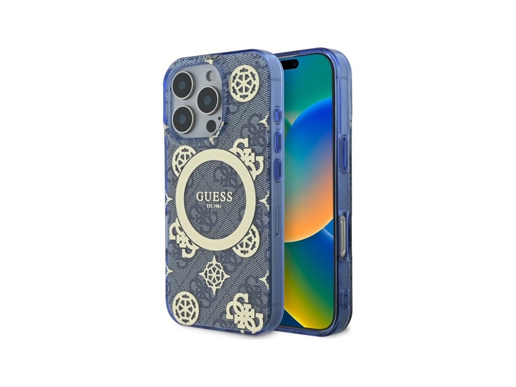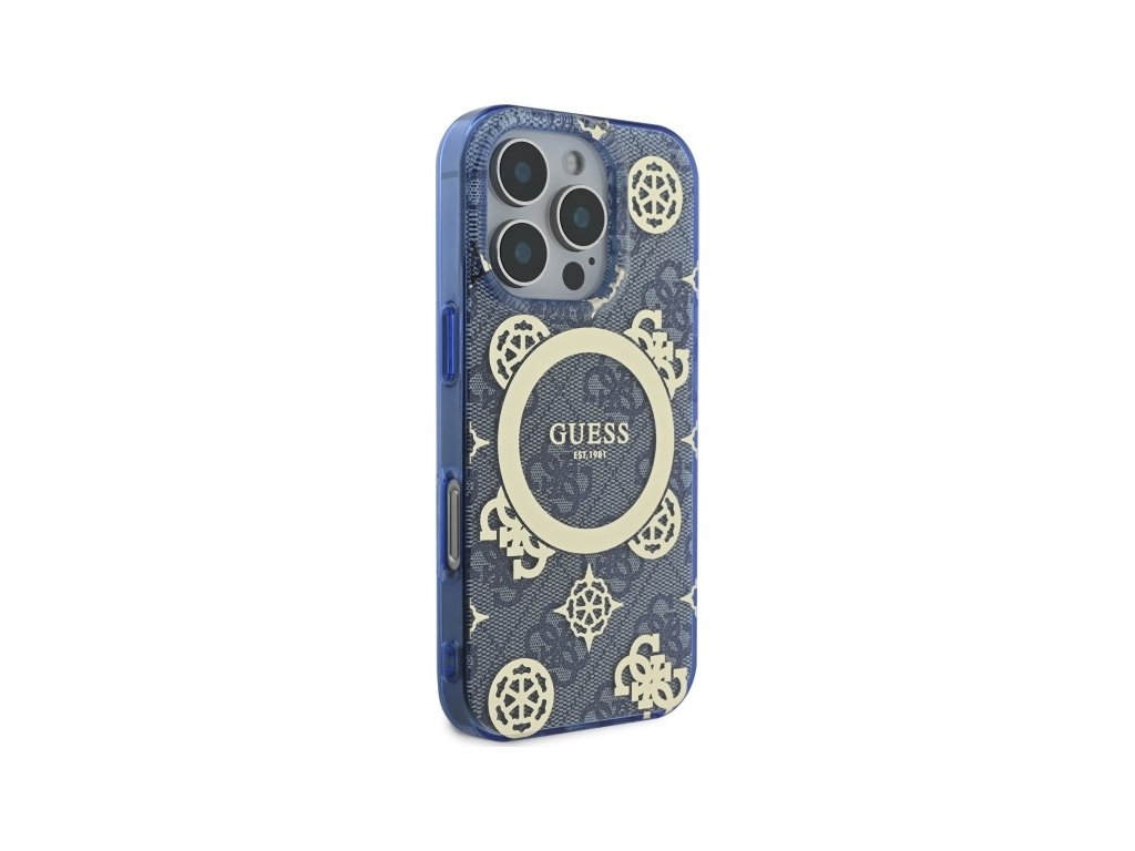 Guess IML pivoňkový kryt na 4G pozadí s MagSafe na iPhone 16 Pro (GUHMP16LH4PYEEB) - modrý