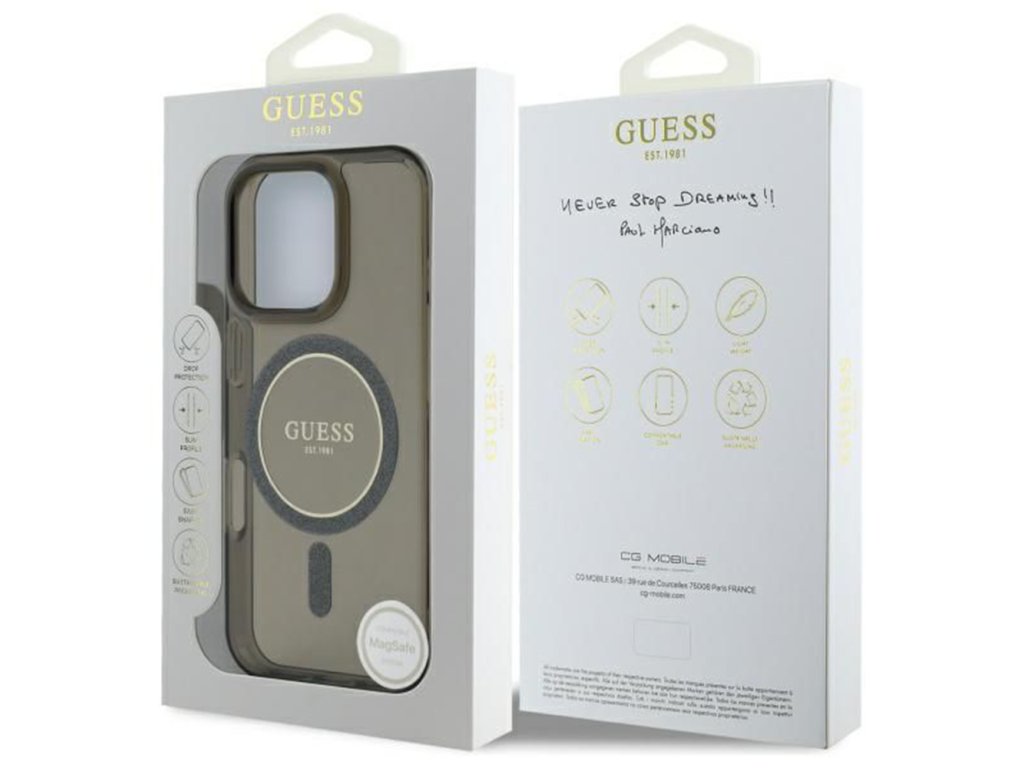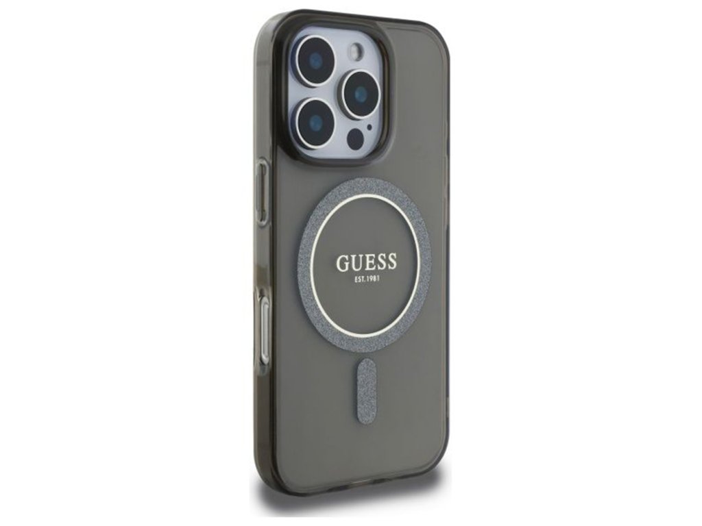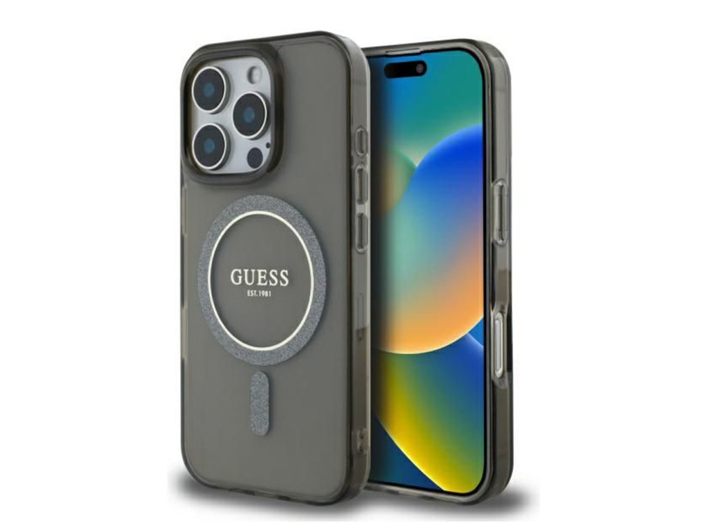 Guess IML třpytivý kruhový kryt s MagSafe na iPhone 16 Pro (GUHMP16LHFGEREK) - černý