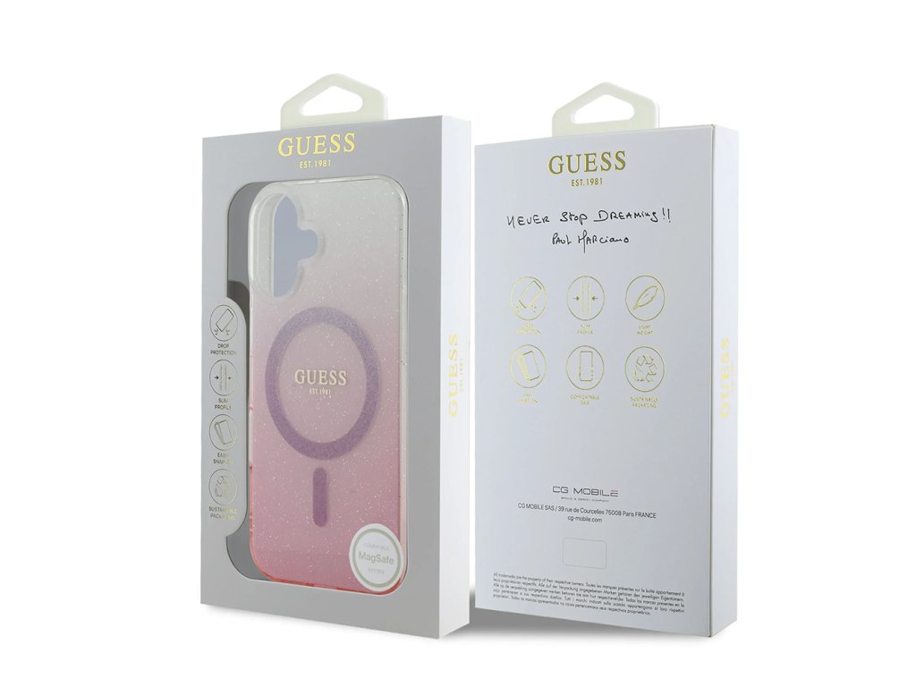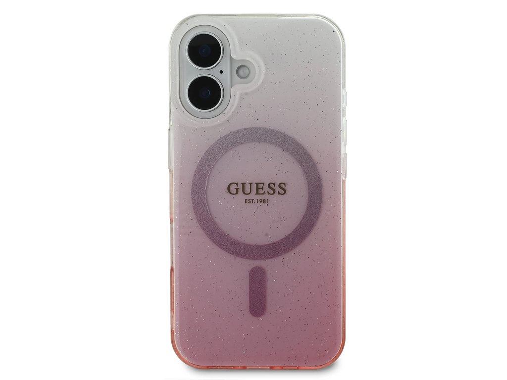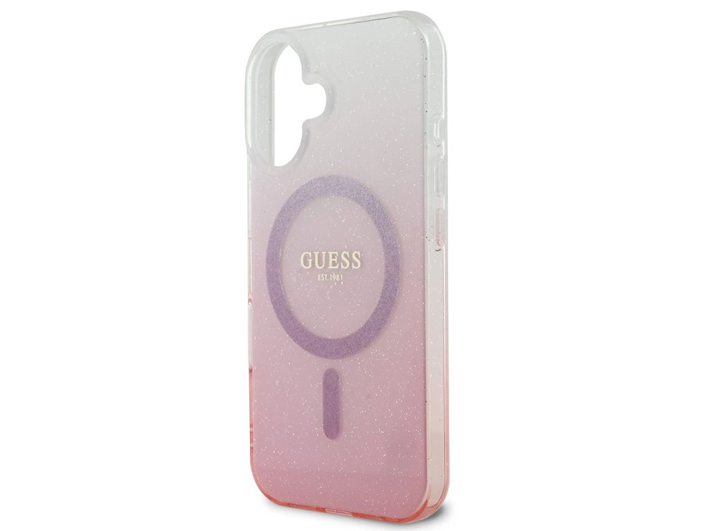 Guess IML třpytivý přechodový kryt s MagSafe na iPhone 16 Plus (GUHMP16MHGRCELP) - růžový