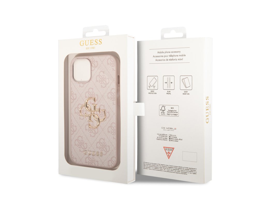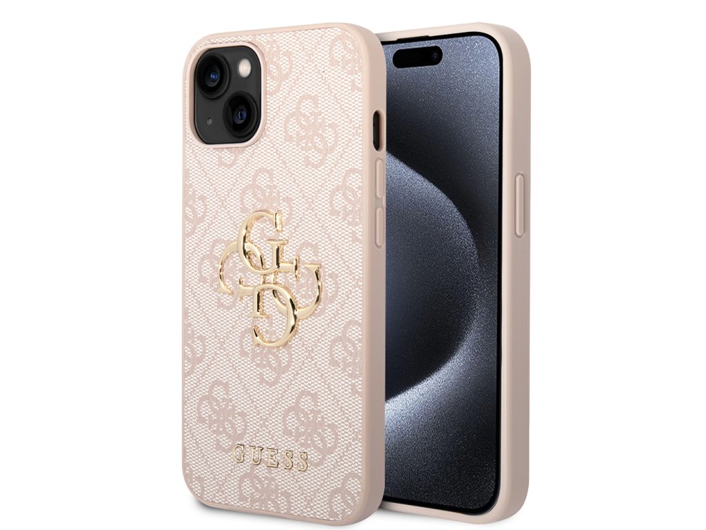Guess kožený kryt 4G s kovovým logem na iPhone 15 (GUHCP15S4GMGPI) - růžový