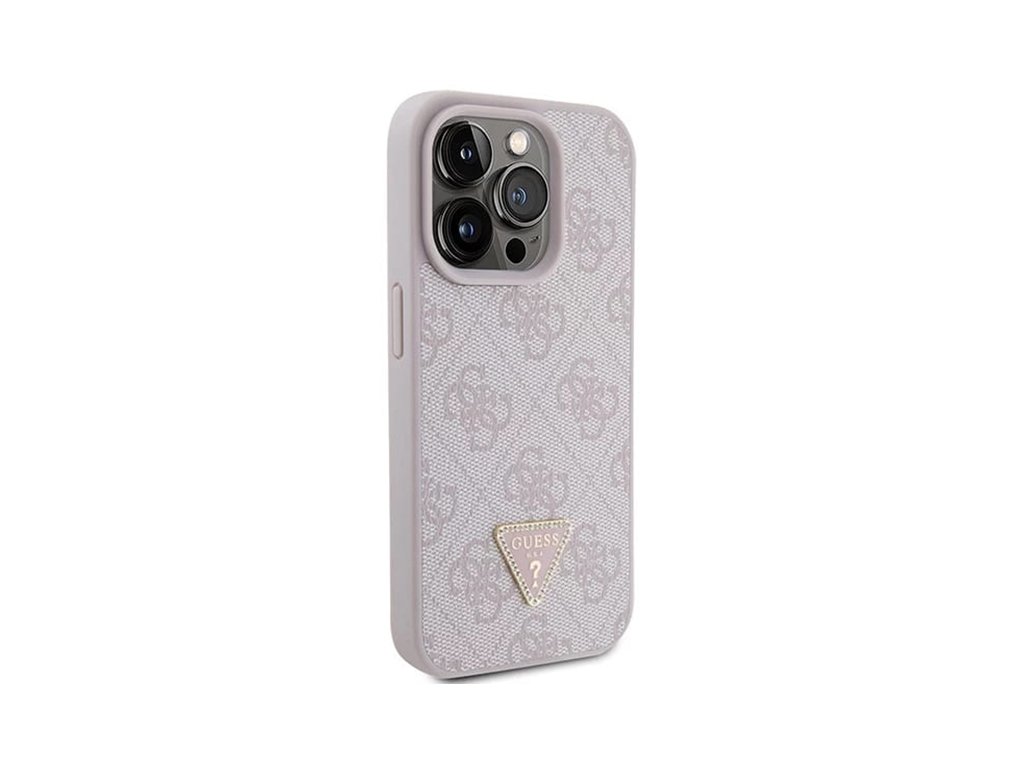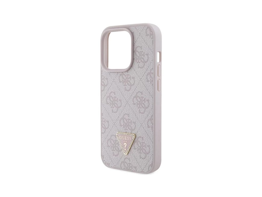 Guess kožený kryt 4G Triangle Strass pro iPhone 15 Pro (GUHCP15LP4TDPP) - růžový