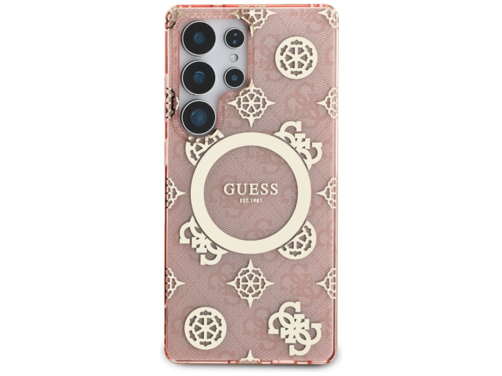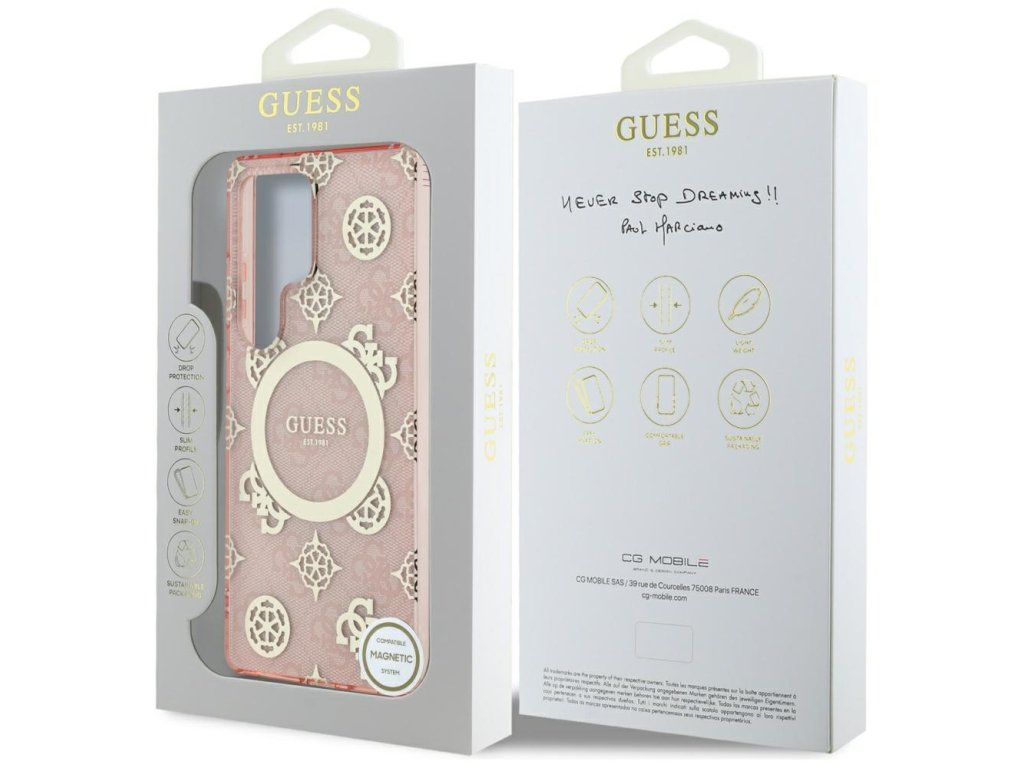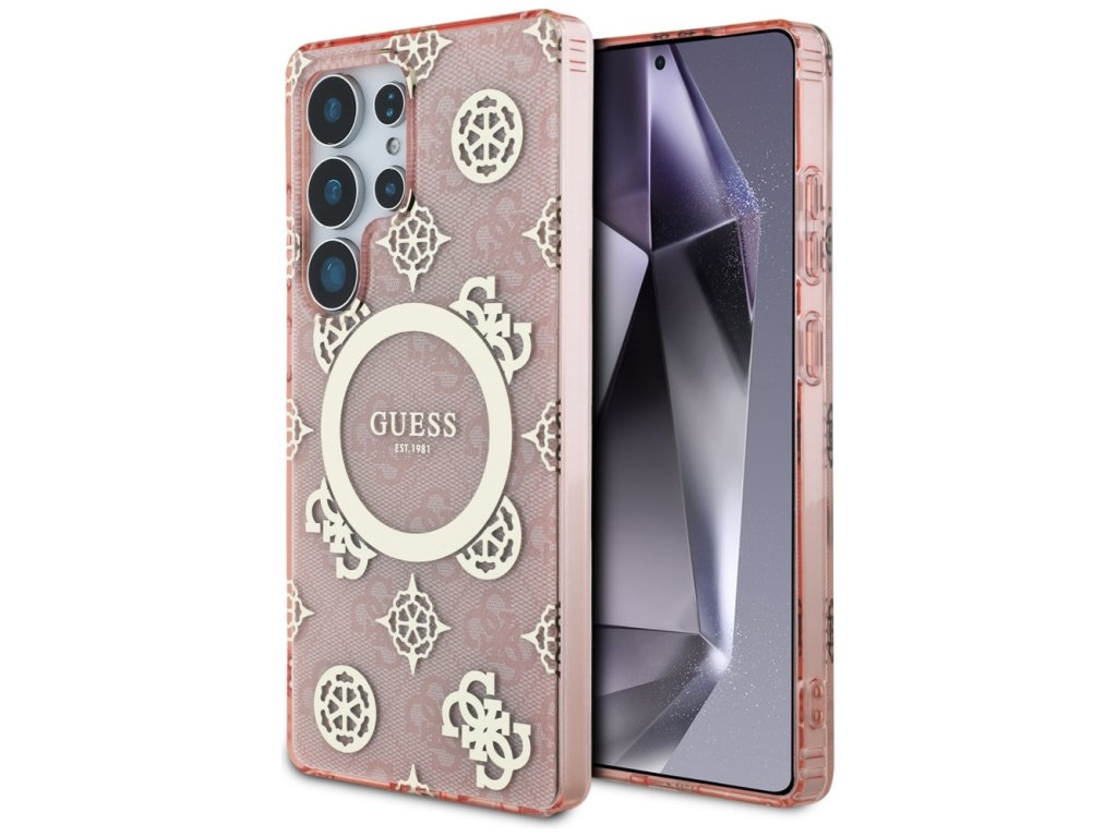 Guess Kryt IML Peony On 4G Background s MagSafe pro Samsung Galaxy S25 Ultra – růžový