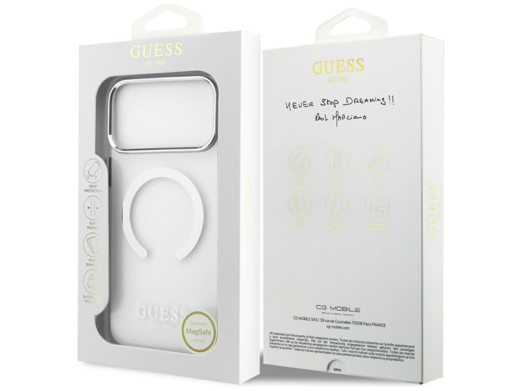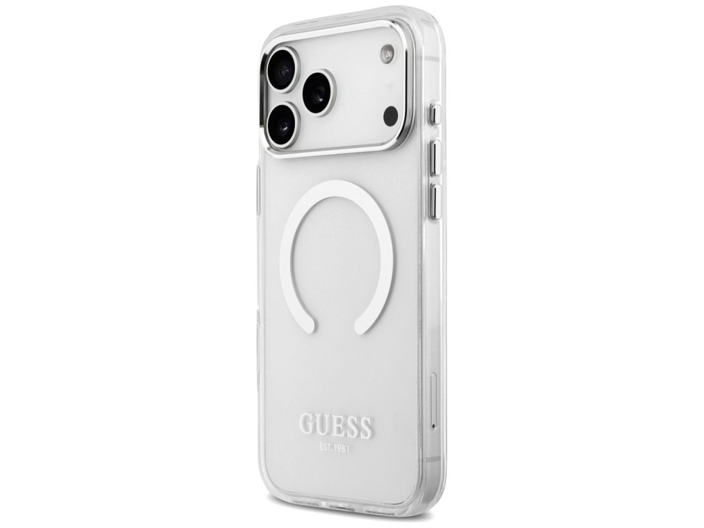 Guess - Metal Outline MagSafe pouzdro pro iPhone 17 Pro Max - stříbrné