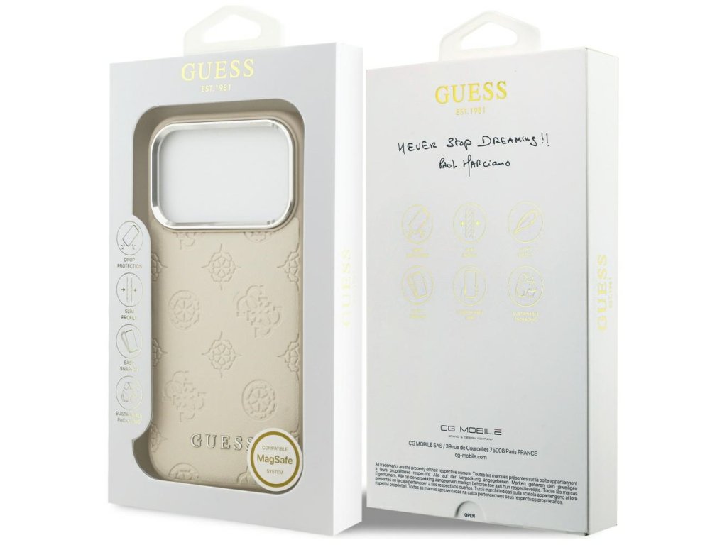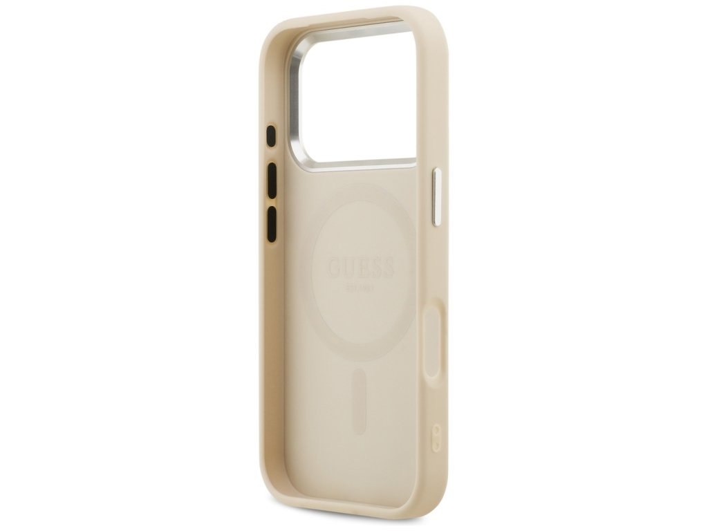Guess - Peony Hot Stamp Script MagSafe pouzdro pro iPhone 17 Pro - béžové
