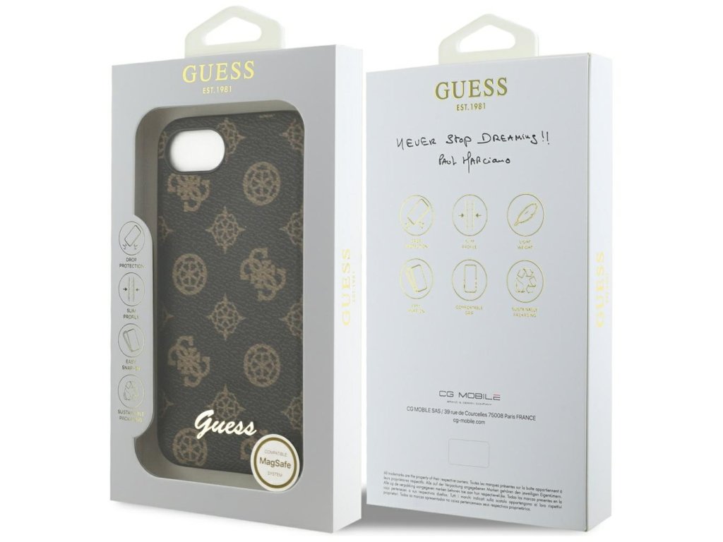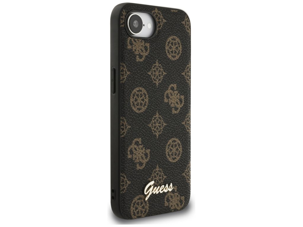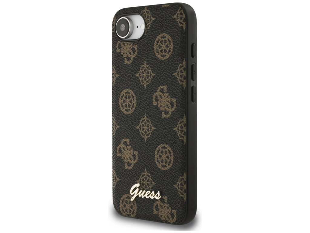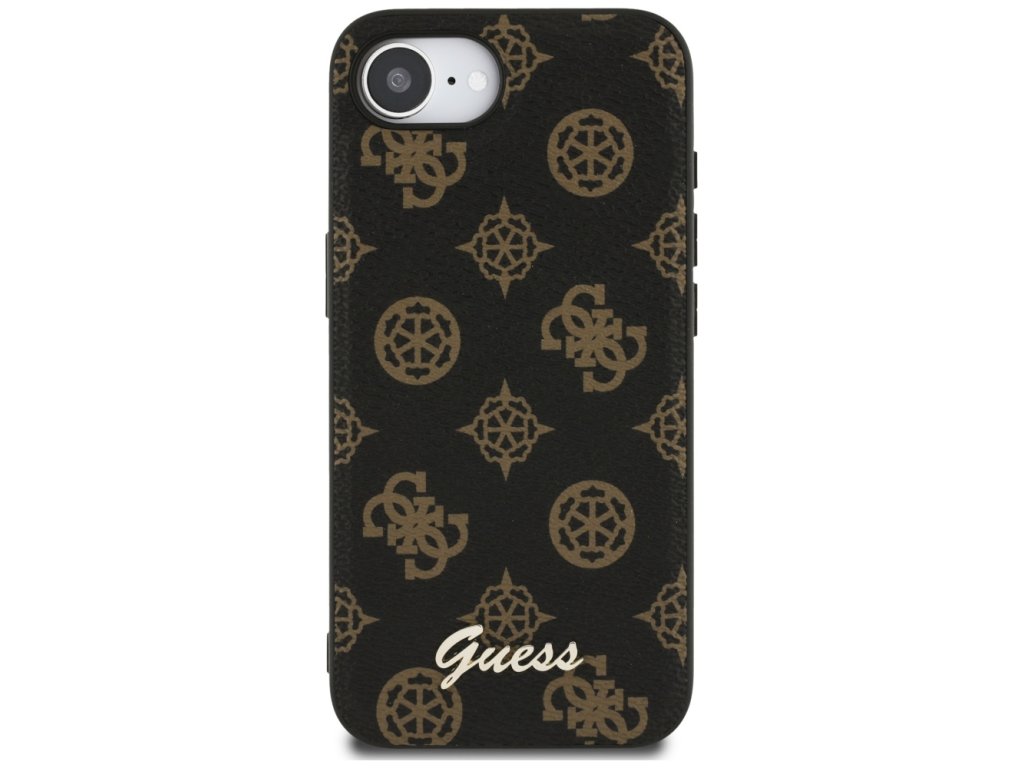 Guess - Peony Script MagSafe kožené pouzdro na iPhone 16e - černý