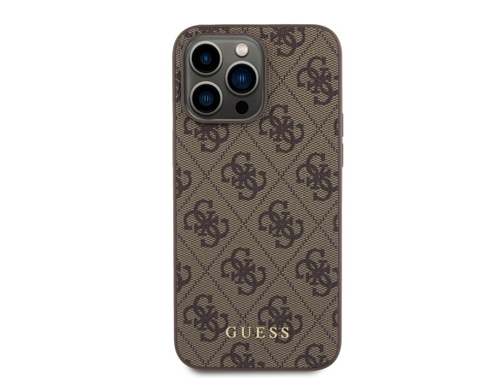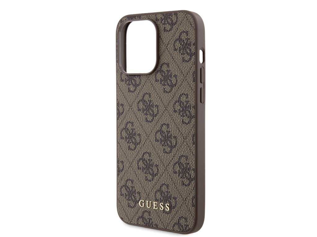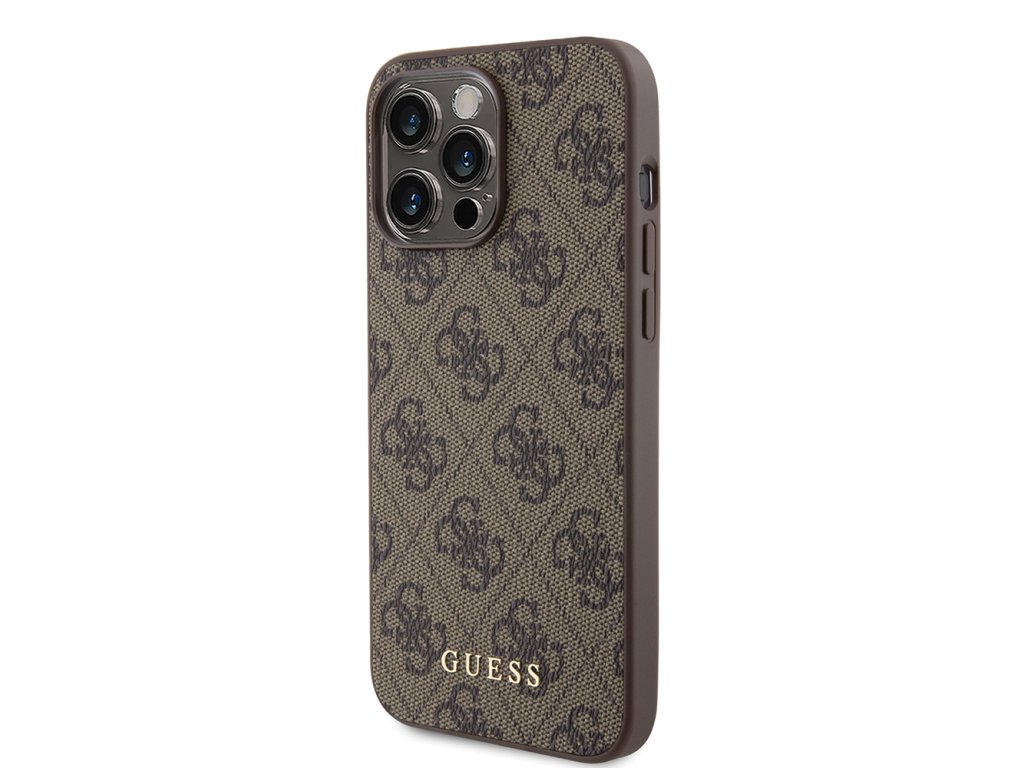 Guess pevný kryt 4G s kovovým zlatým logem pro iPhone 15 Pro Max (GUHCP15XG4GFBR) - hnědý