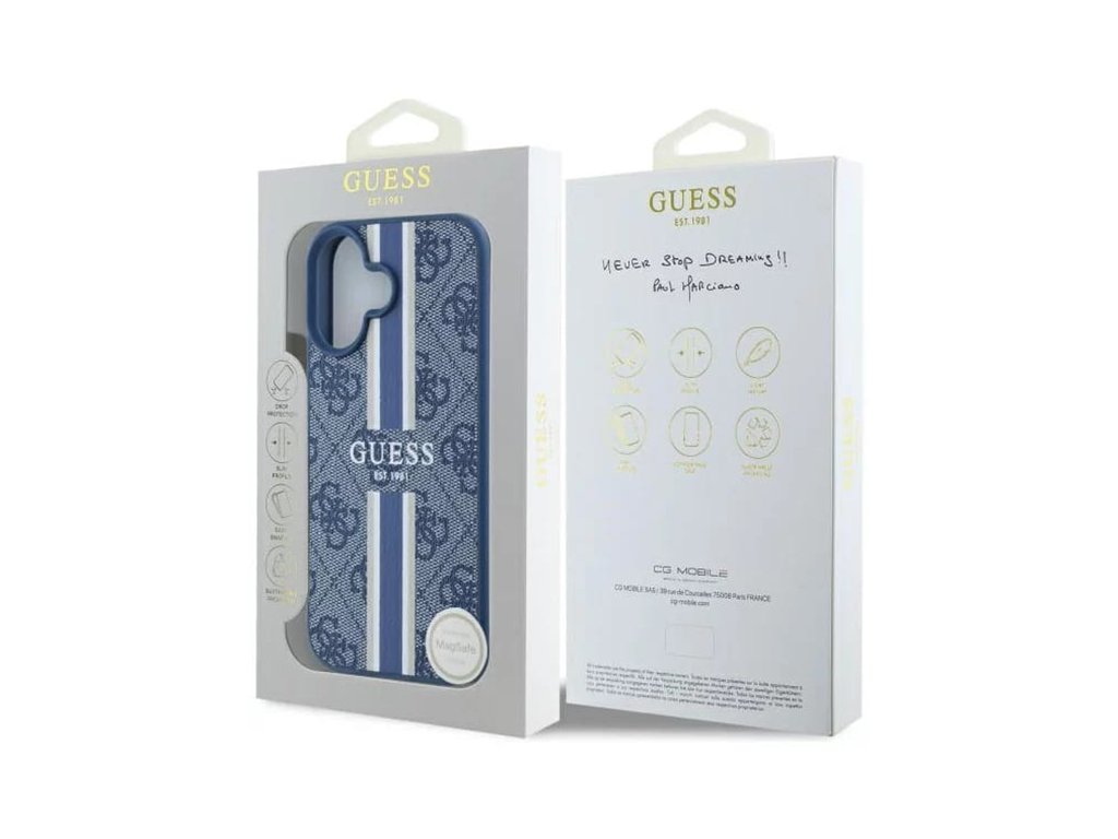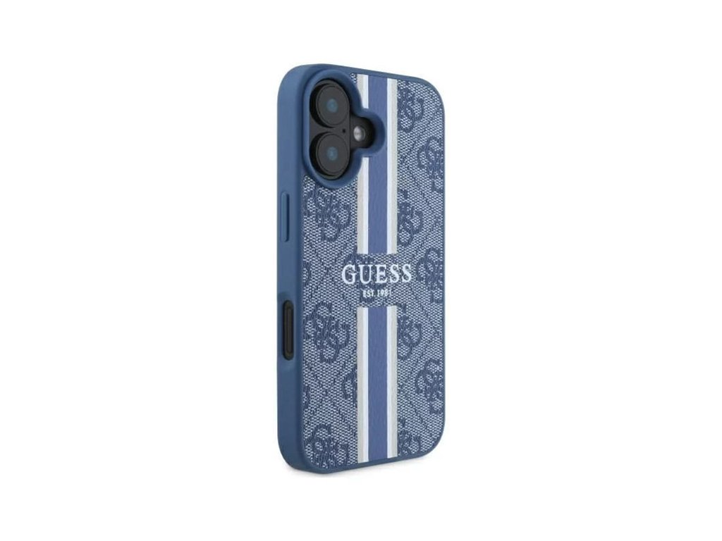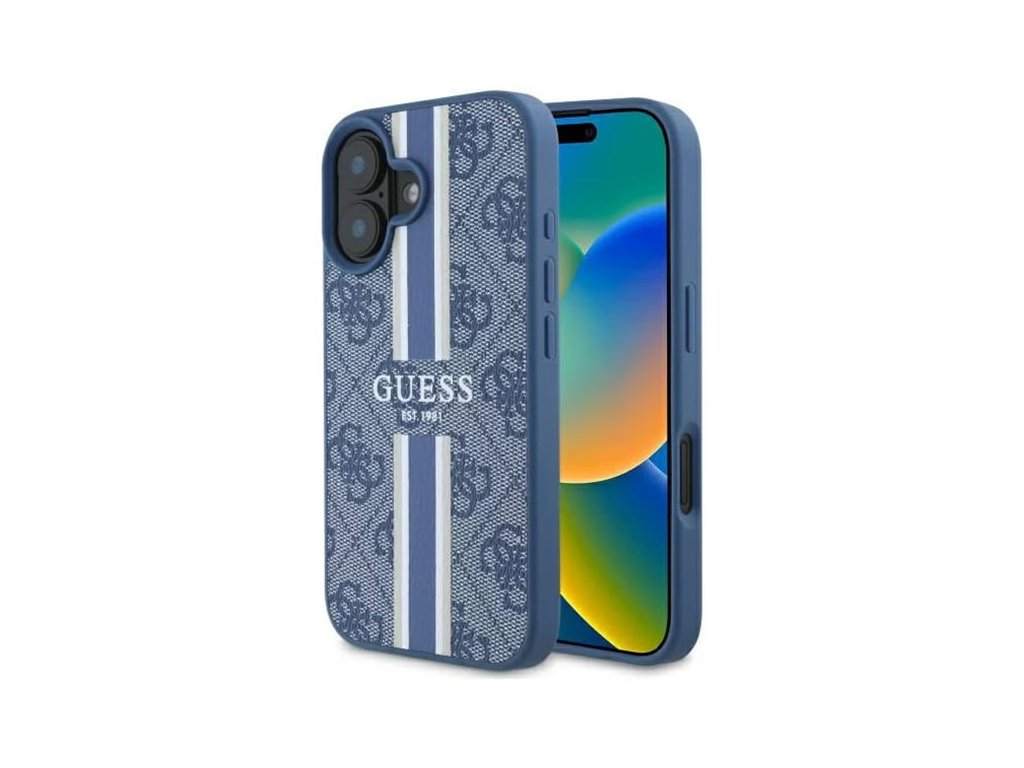 Guess pevný kryt 4G s potištěnými pruhy a MagSafe na iPhone 16 (GUHMP16SP4RPSB) - modrý