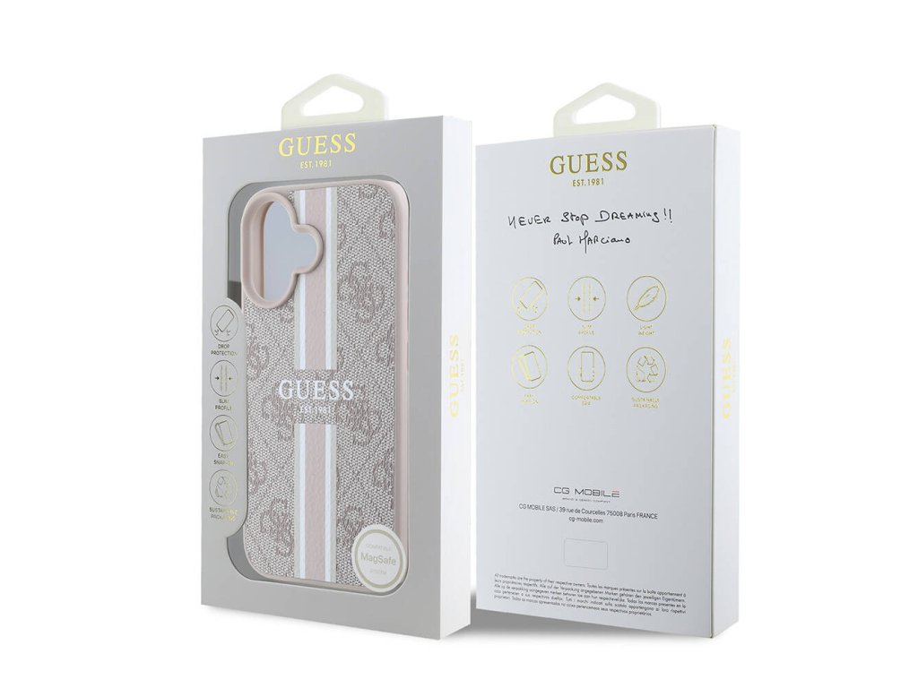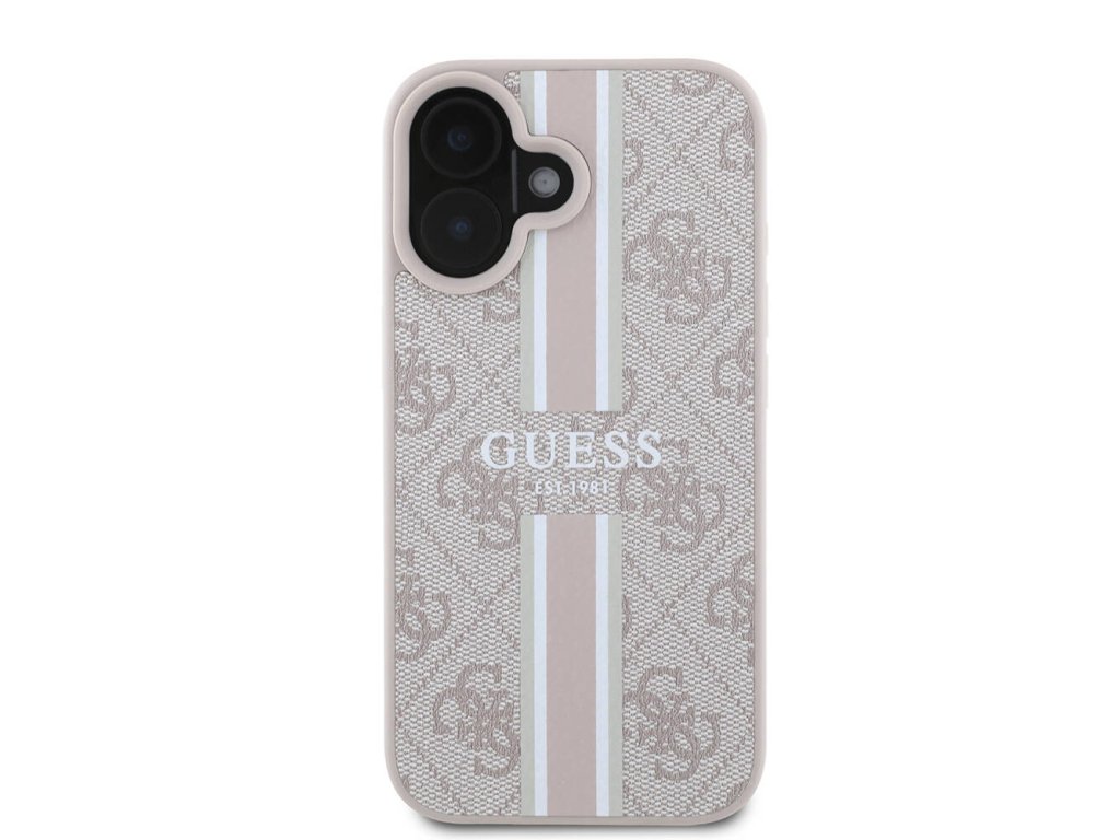 Guess pevný kryt 4G s potištěnými pruhy a MagSafe na iPhone 16 Plus (GUHMP16MP4RPSP) - růžový