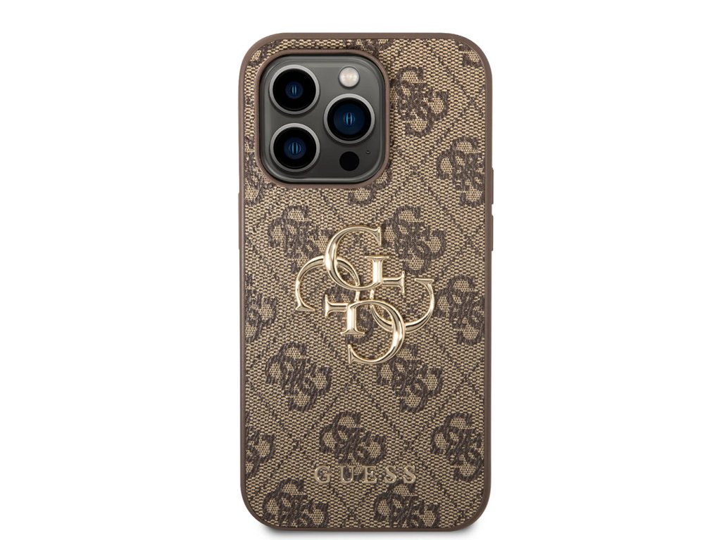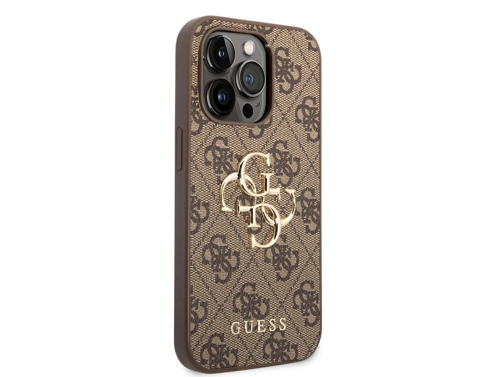 Guess pevný kryt 4G s velkým kovovým logem pro iPhone 15 Pro (GUHCP15L4GMGBR) - hnědý