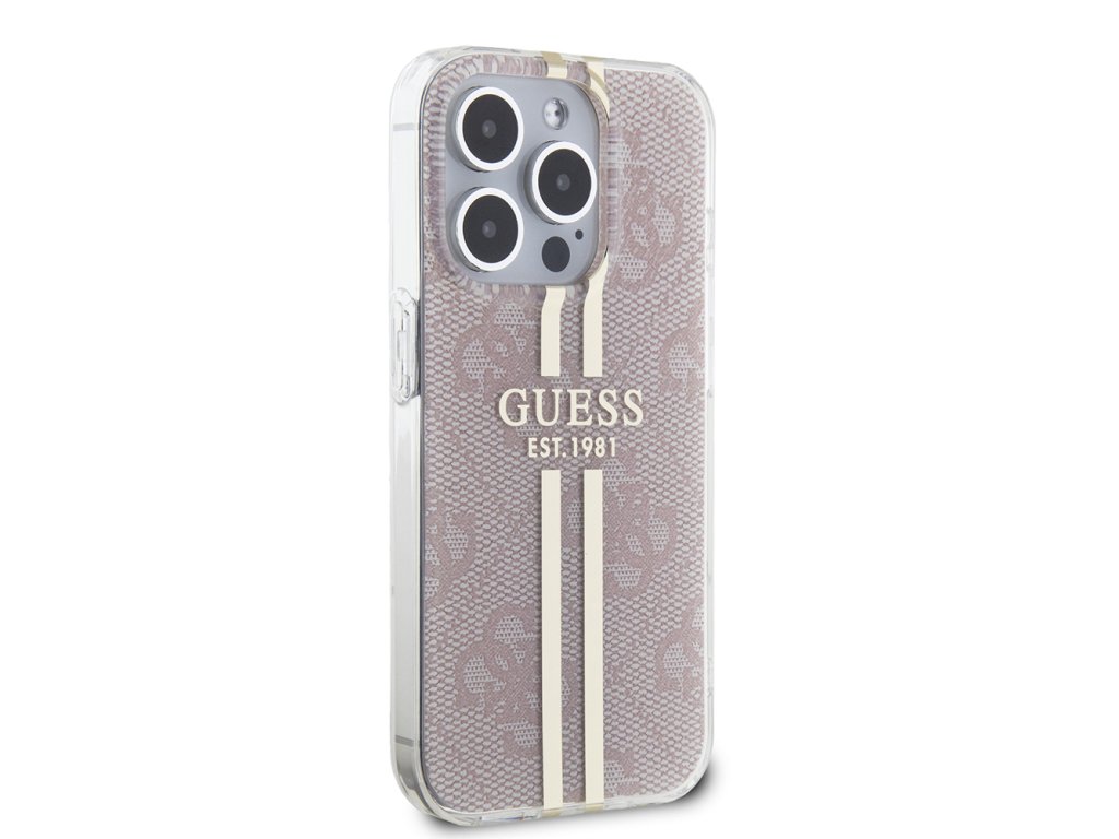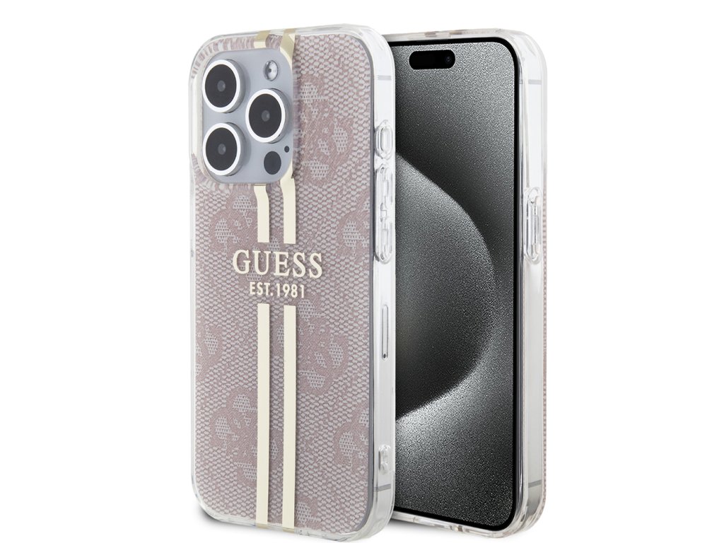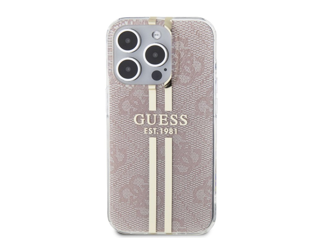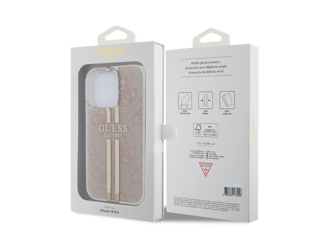 Guess pevný kryt IML 4G Gold Stripe pro iPhone 15 Pro (GUHCP15LH4PSEGP) - růžový