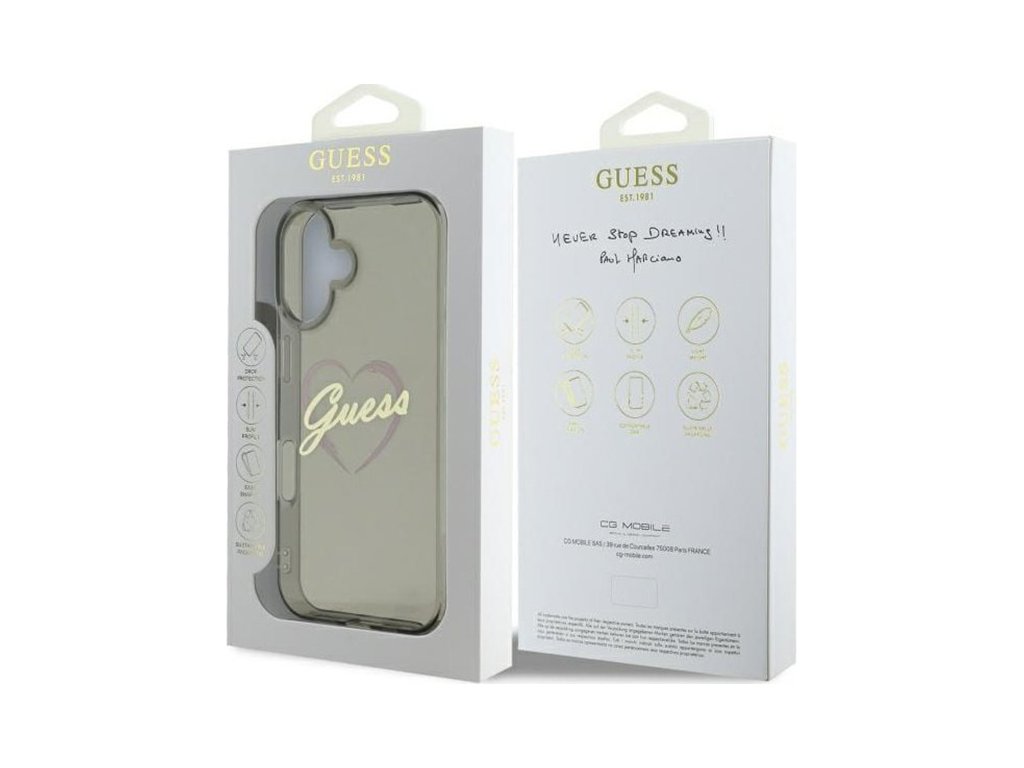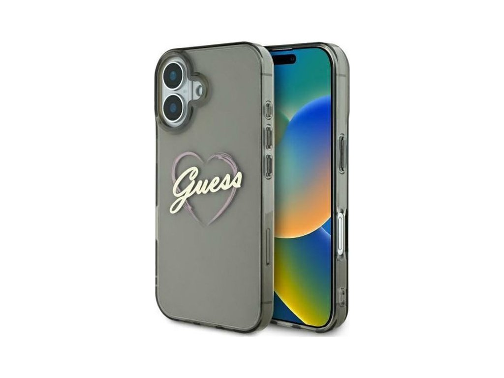 Guess pevný kryt IML Heart pro iPhone 16 Plus (GUHCP16MHCHGSPK) - černý