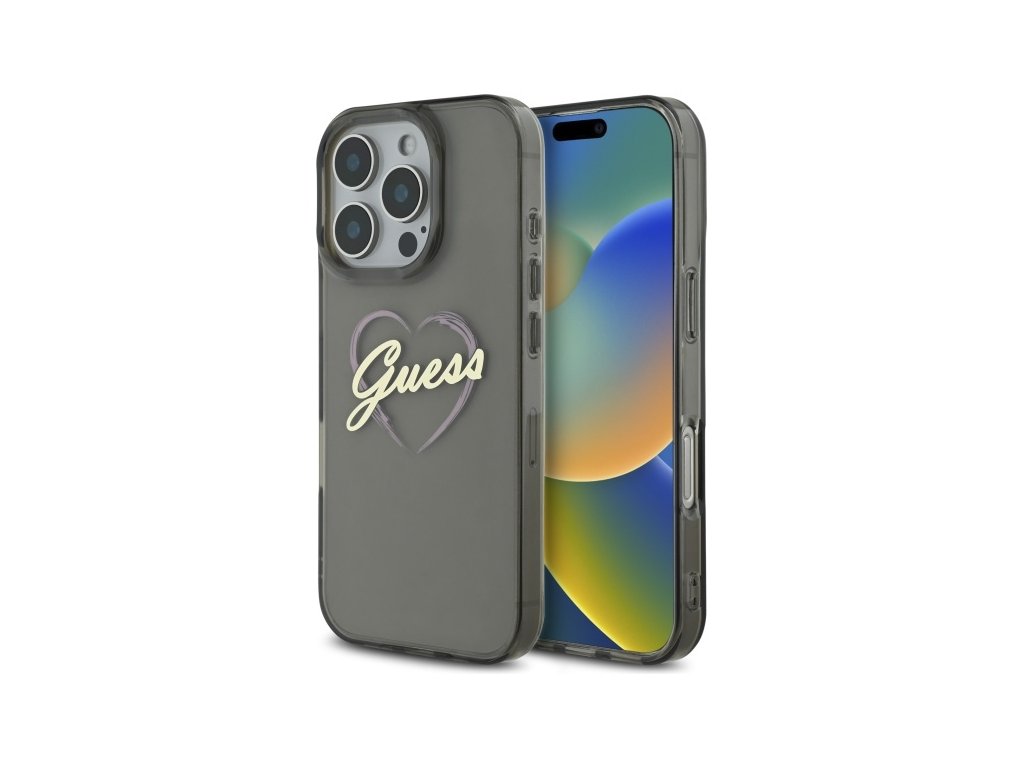 Guess pevný kryt IML Heart pro iPhone 16 Pro (GUHCP16LHCHGSPK) - černý