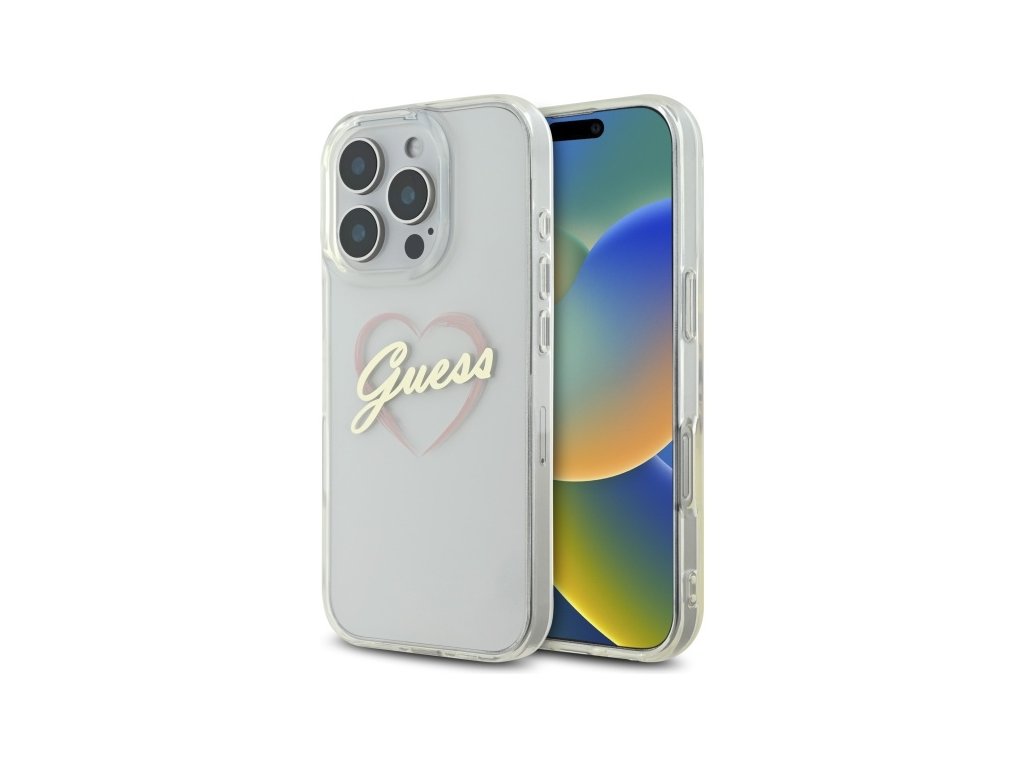 Guess pevný kryt IML Heart pro iPhone 16 Pro (GUHCP16LHCHGSPT) - průhledný