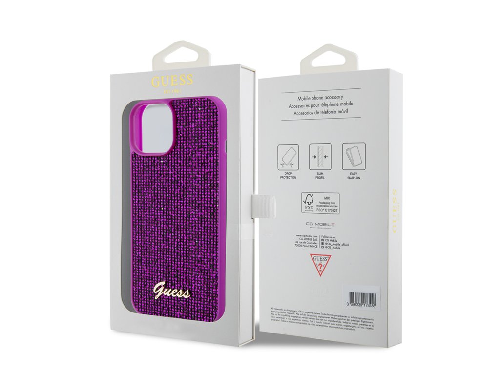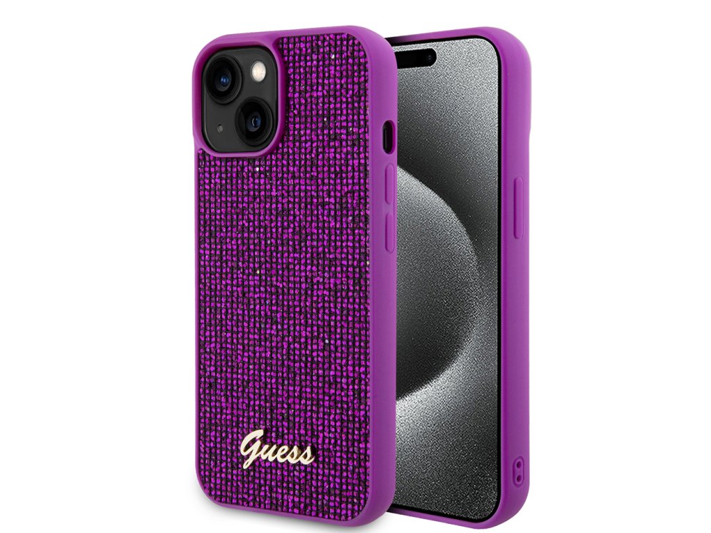 Guess pouzdro Disco Metal Script pro iPhone 15 (GUHCP15SPMSDGSF) - fuchsiové