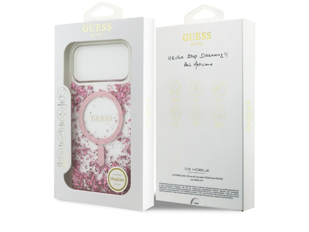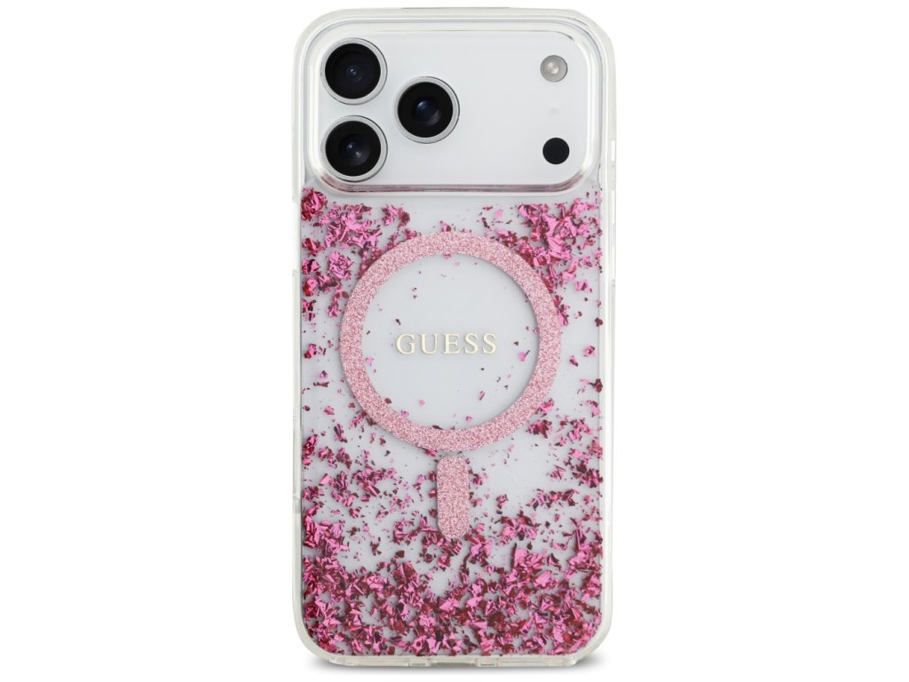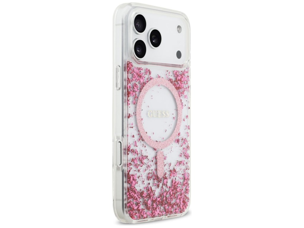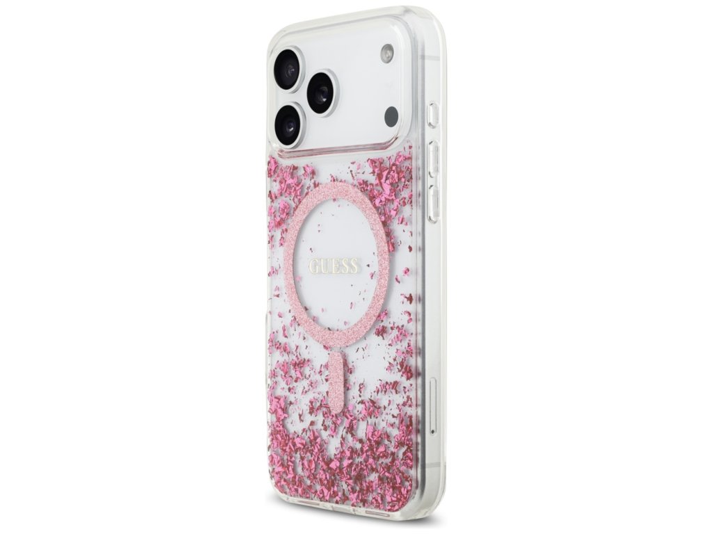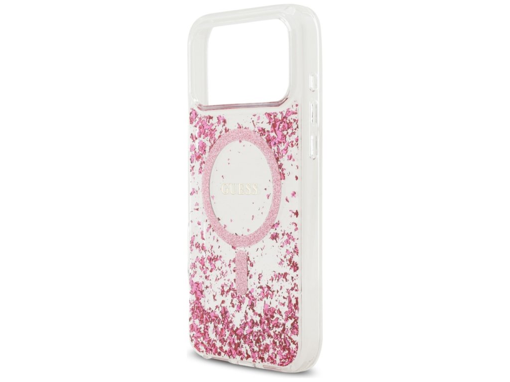 Guess - Resin Bottom Glitter MagSafe pouzdro pro iPhone 17 Pro Max - růžové