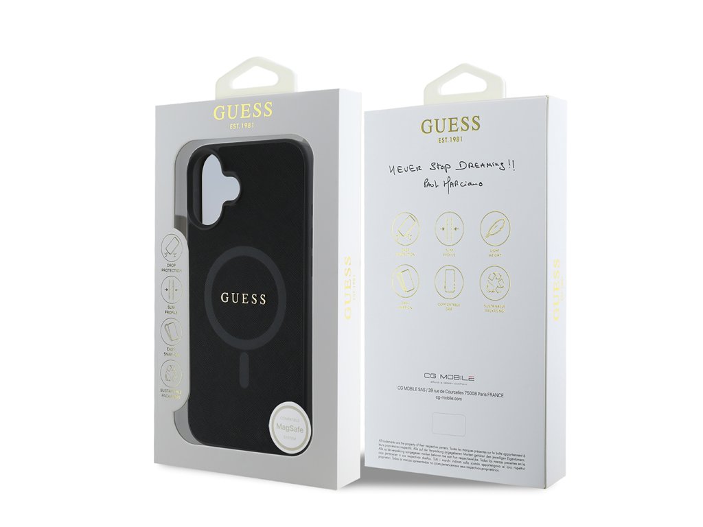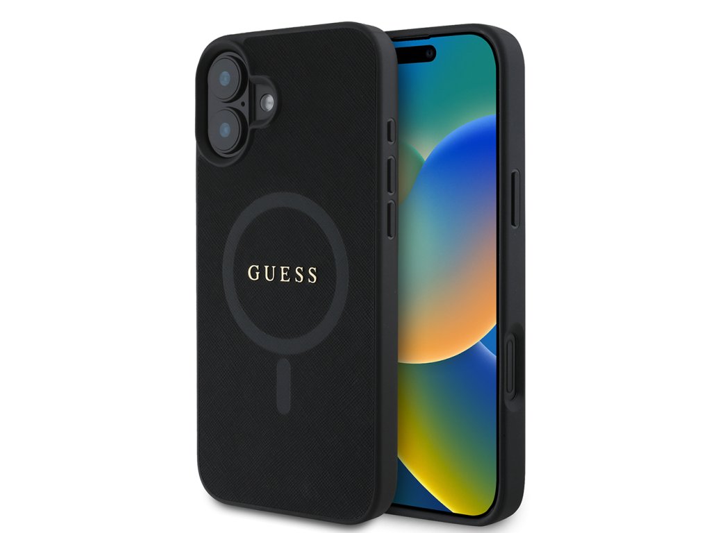 Guess Saffiano Classic Logo MagSafe kryt na iPhone 16 Plus (GUHMP16MPSAHMCK) - černý