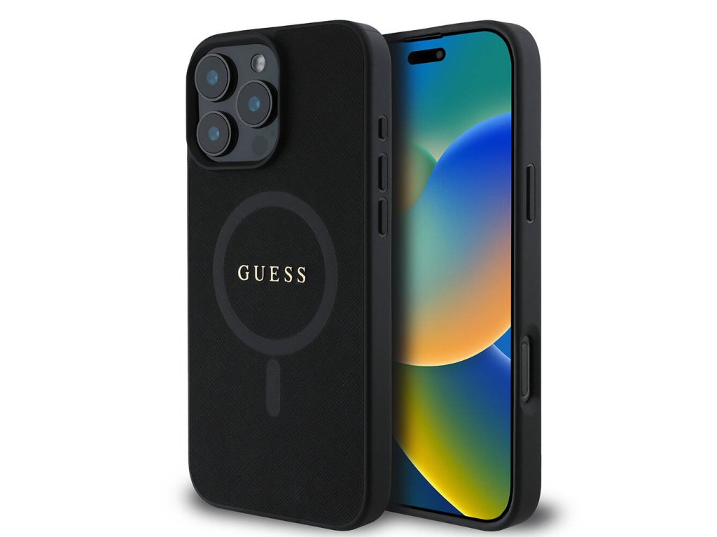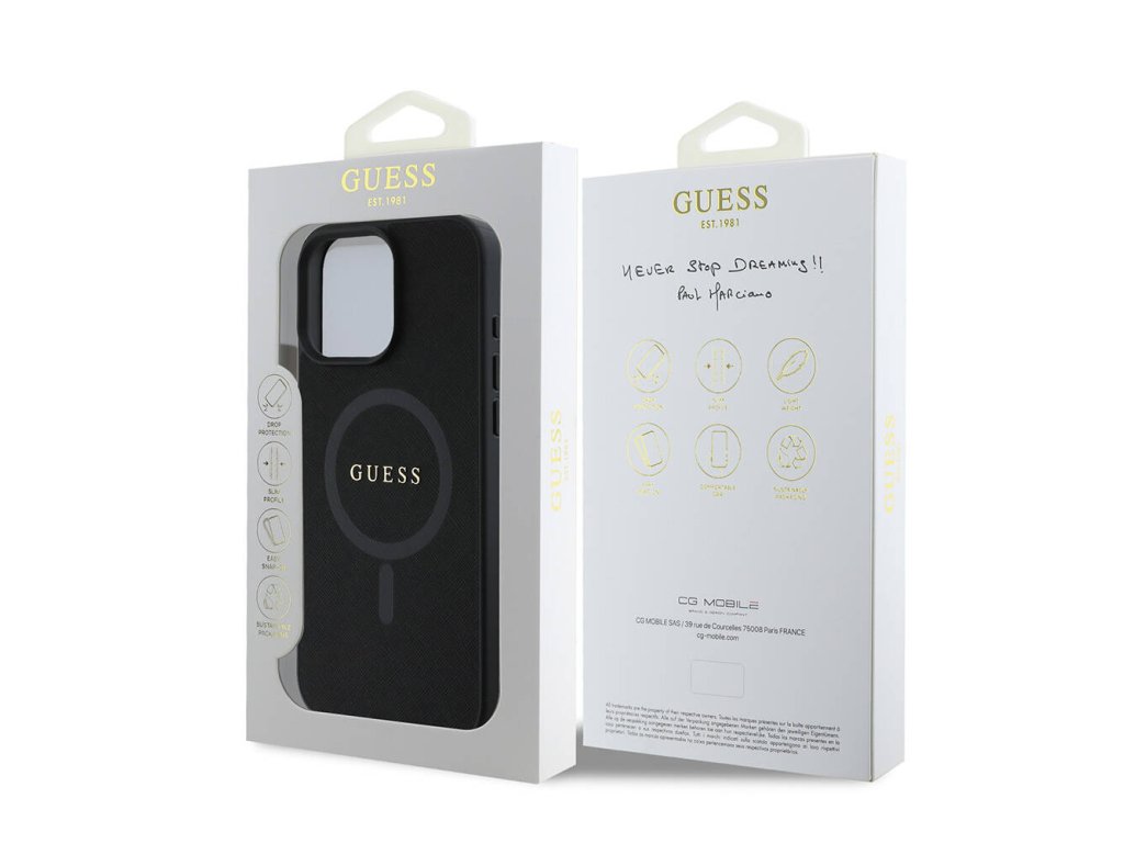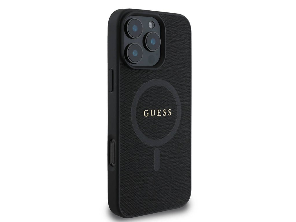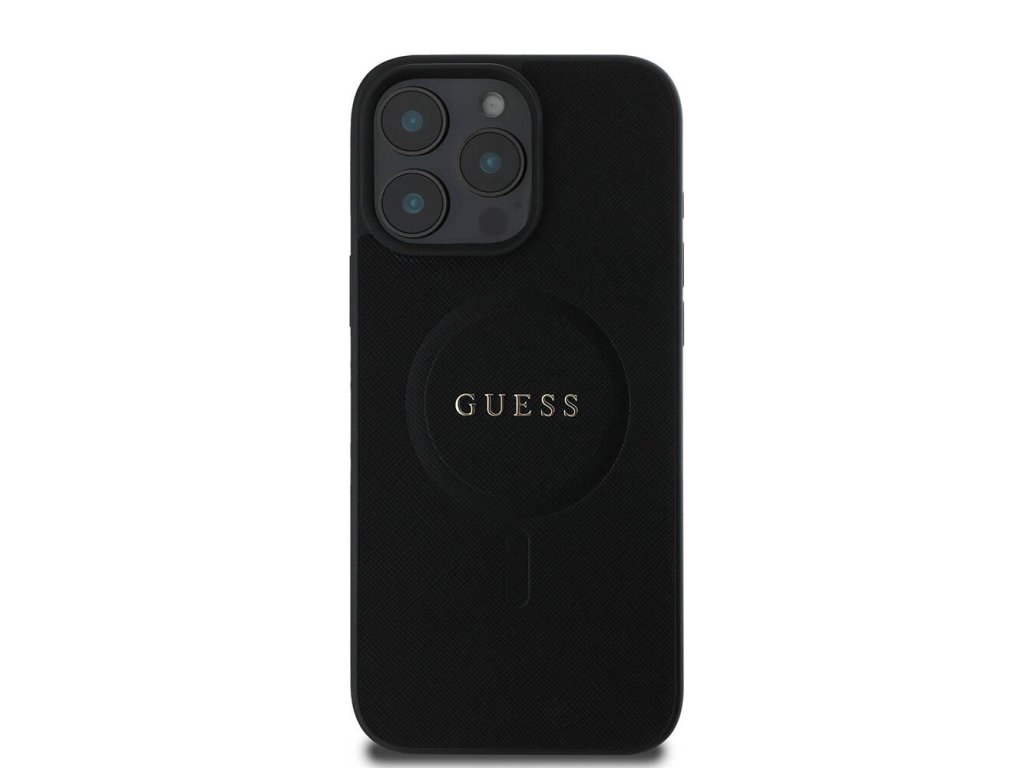 Guess Saffiano Classic Logo MagSafe kryt na iPhone 16 Pro Max (GUHMP16XPSAHMCK) - černý