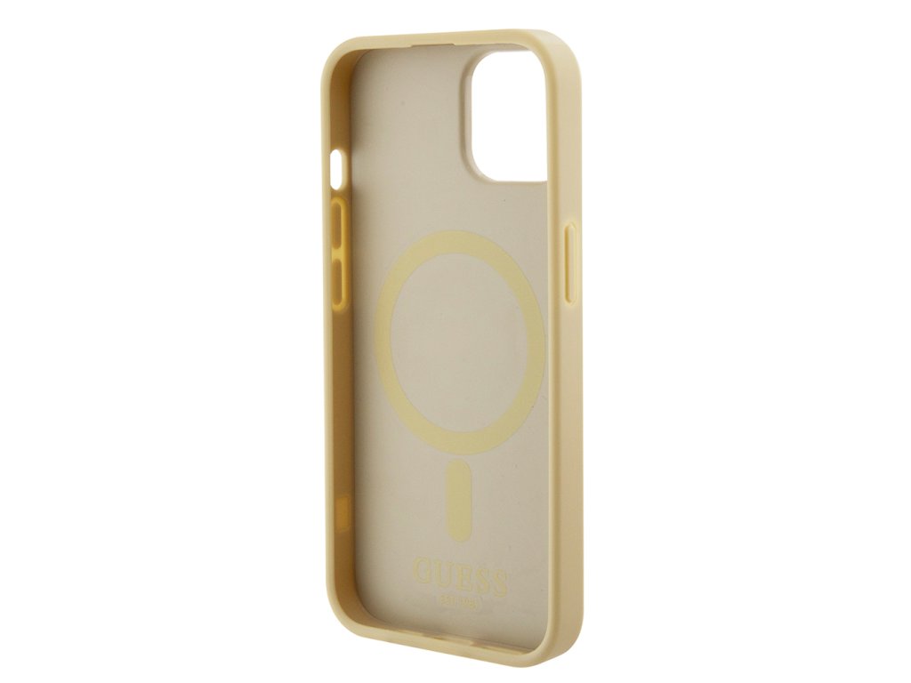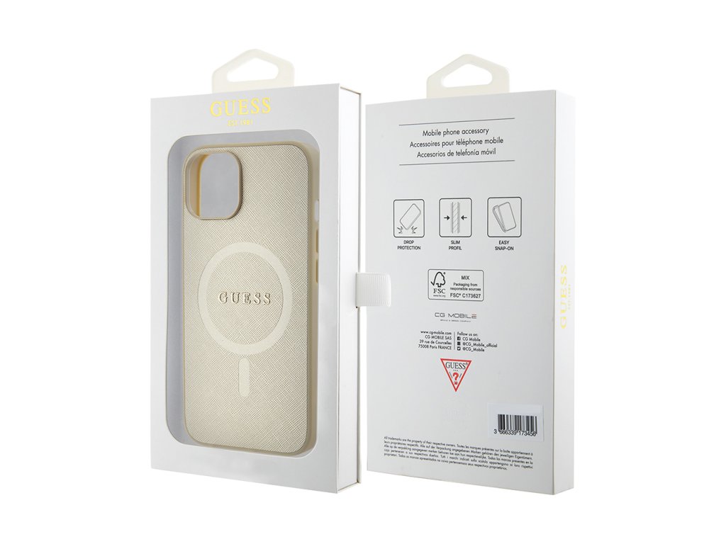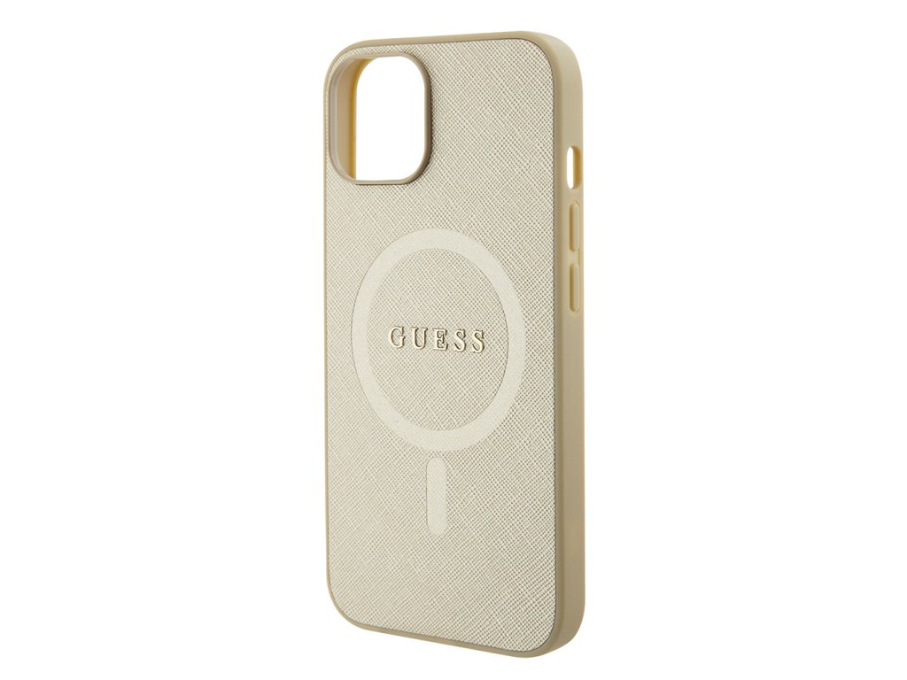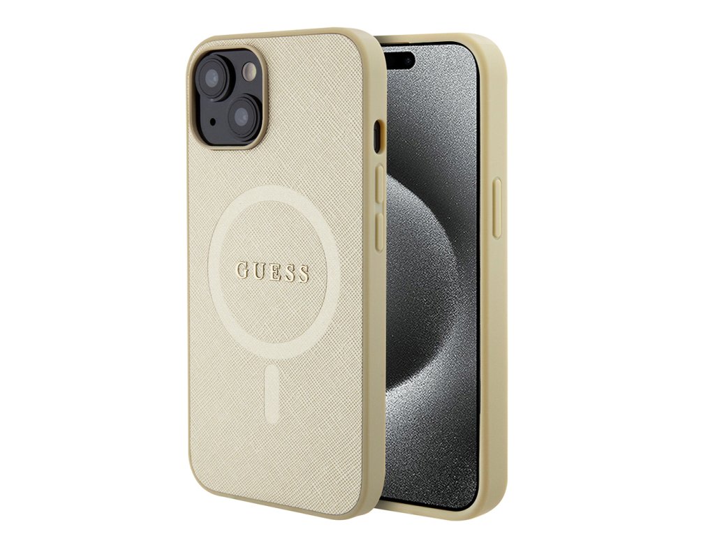 Guess Saffiano MagSafe kryt pro iPhone 15 (GUHMP15SPSAHMCB) - zlatý