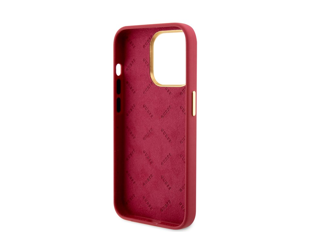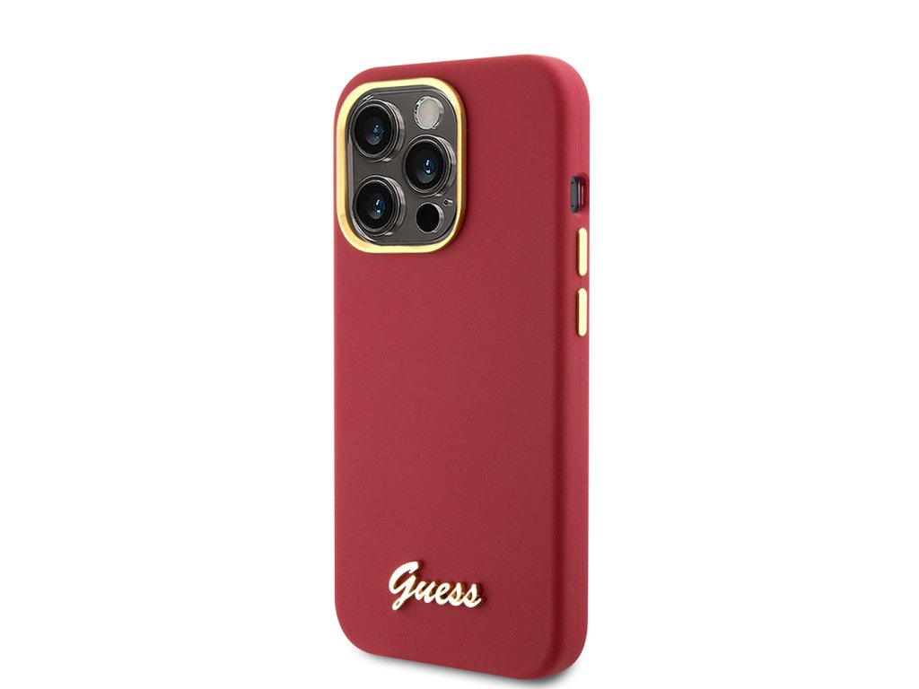 Guess silikonový kryt s kovovým logem Script & rámem na iPhone 15 Pro (GUHCP15LSMBSLM) - červený