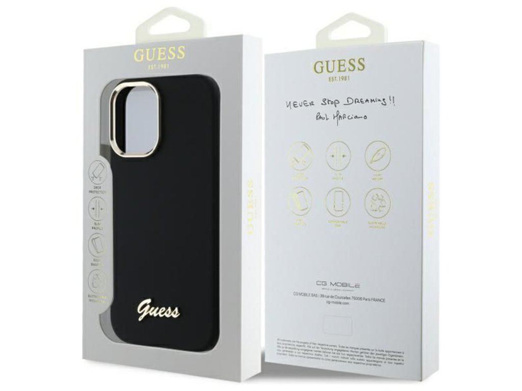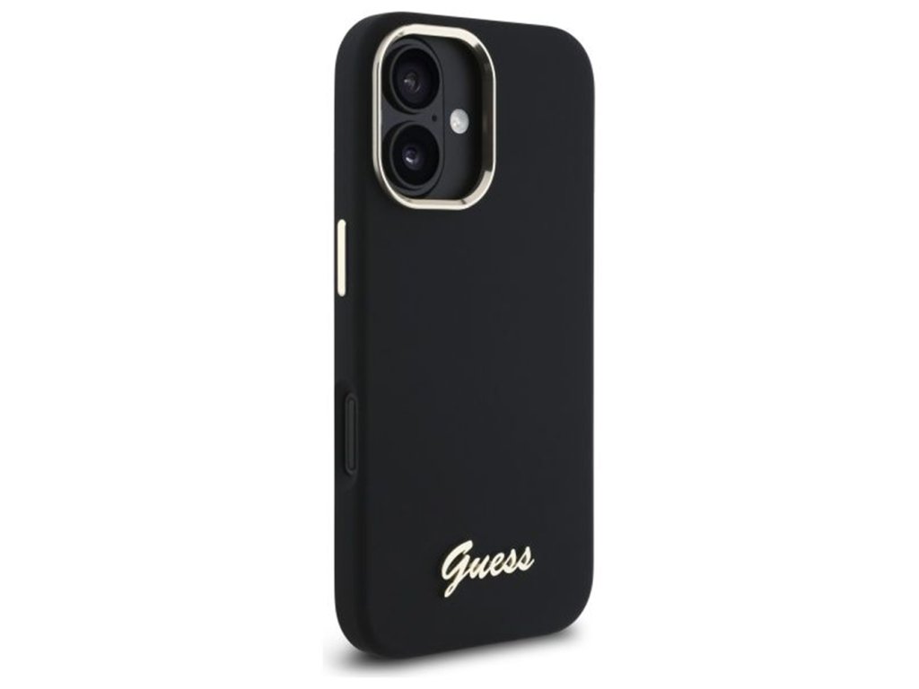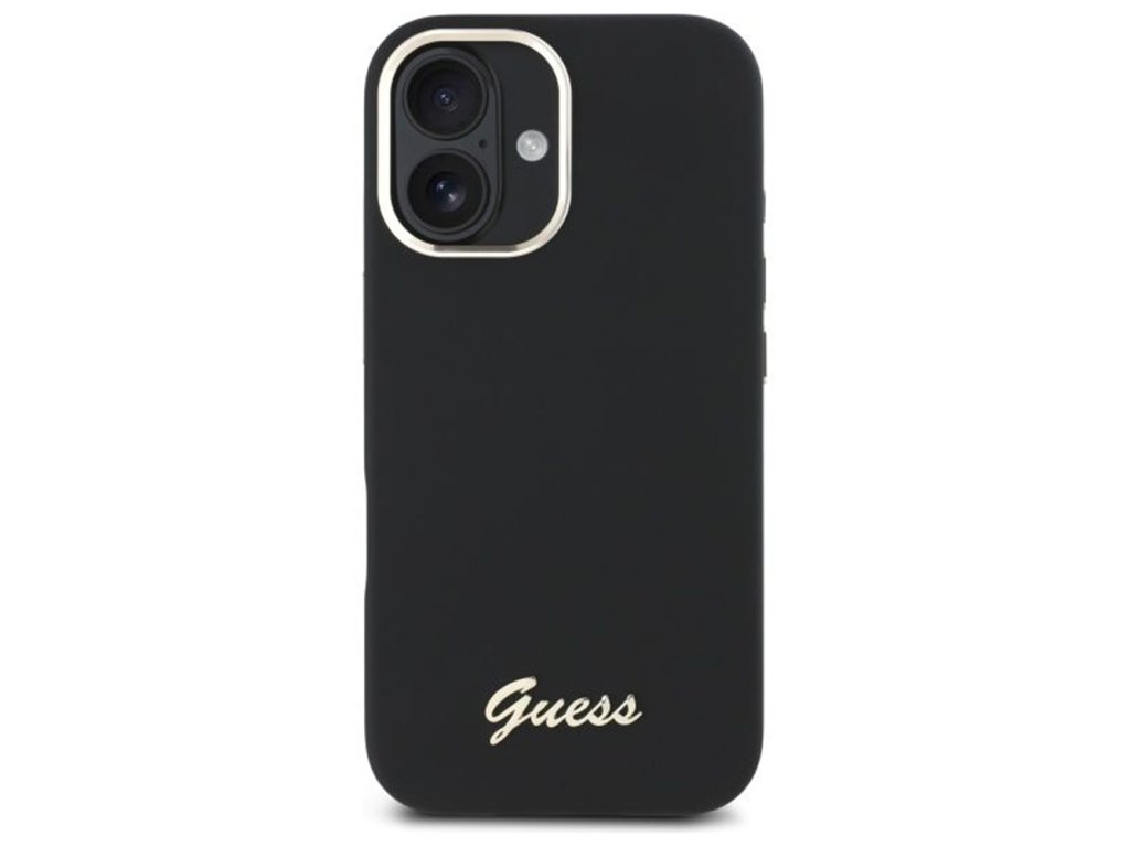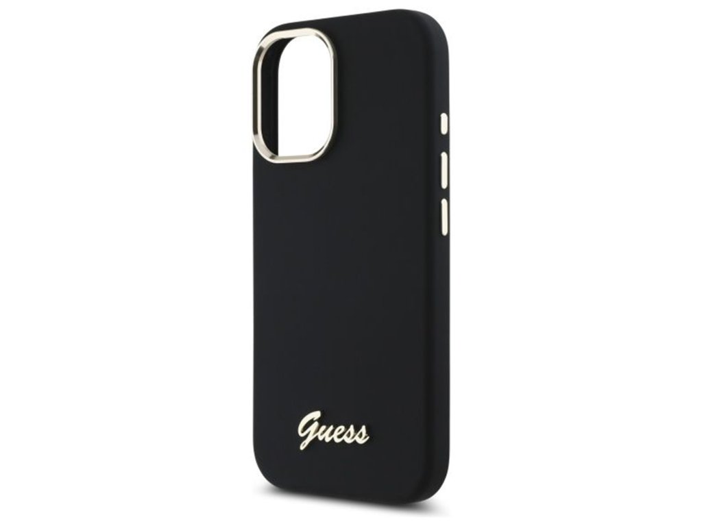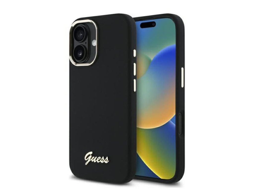 Guess Silikonový Nápis Metal Logo & Rám (GUHCP16MSMBSLK) pouzdro pro - iPhone 16 Plus - Černá