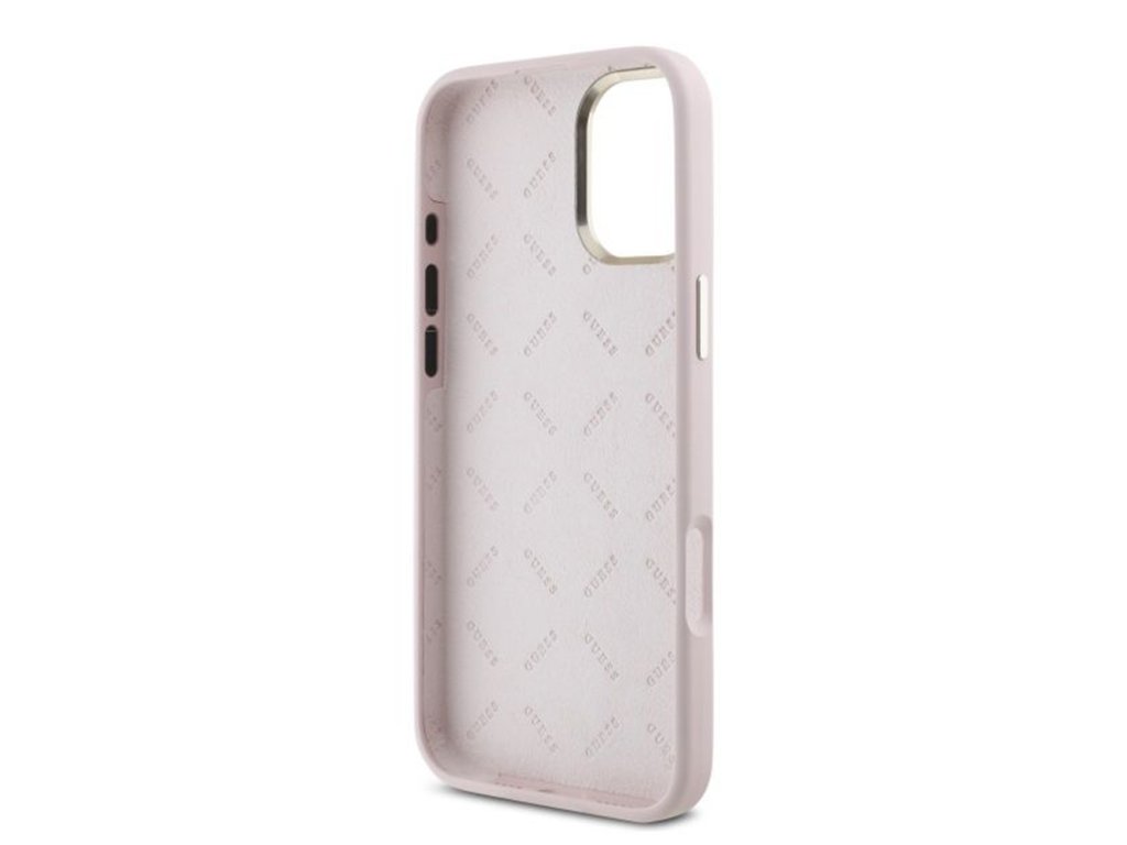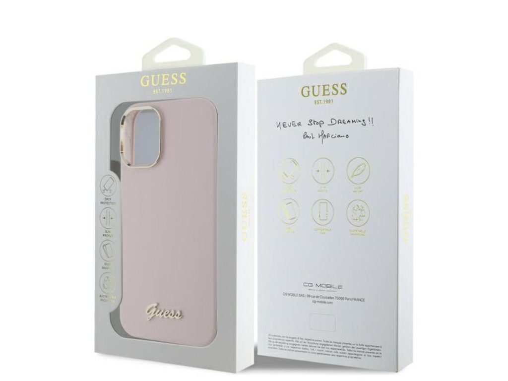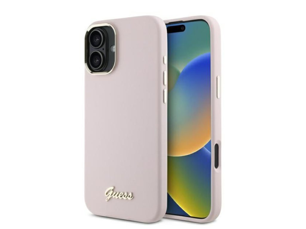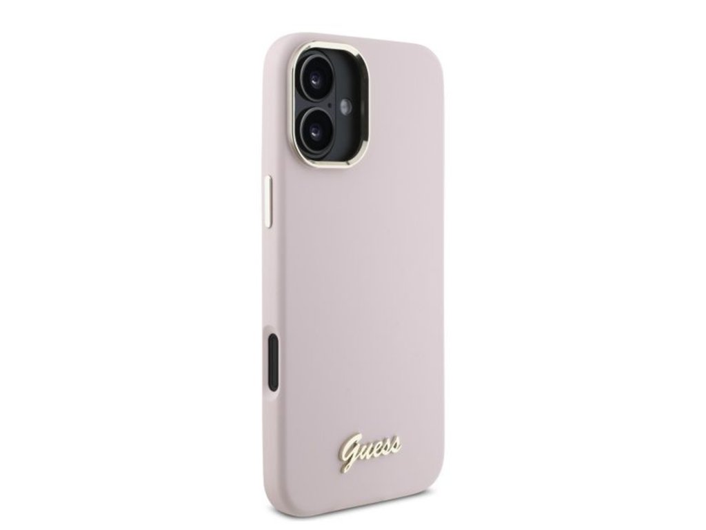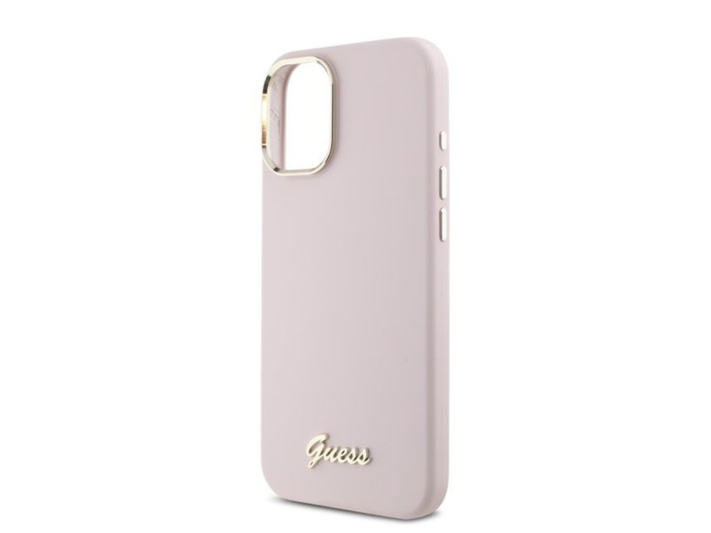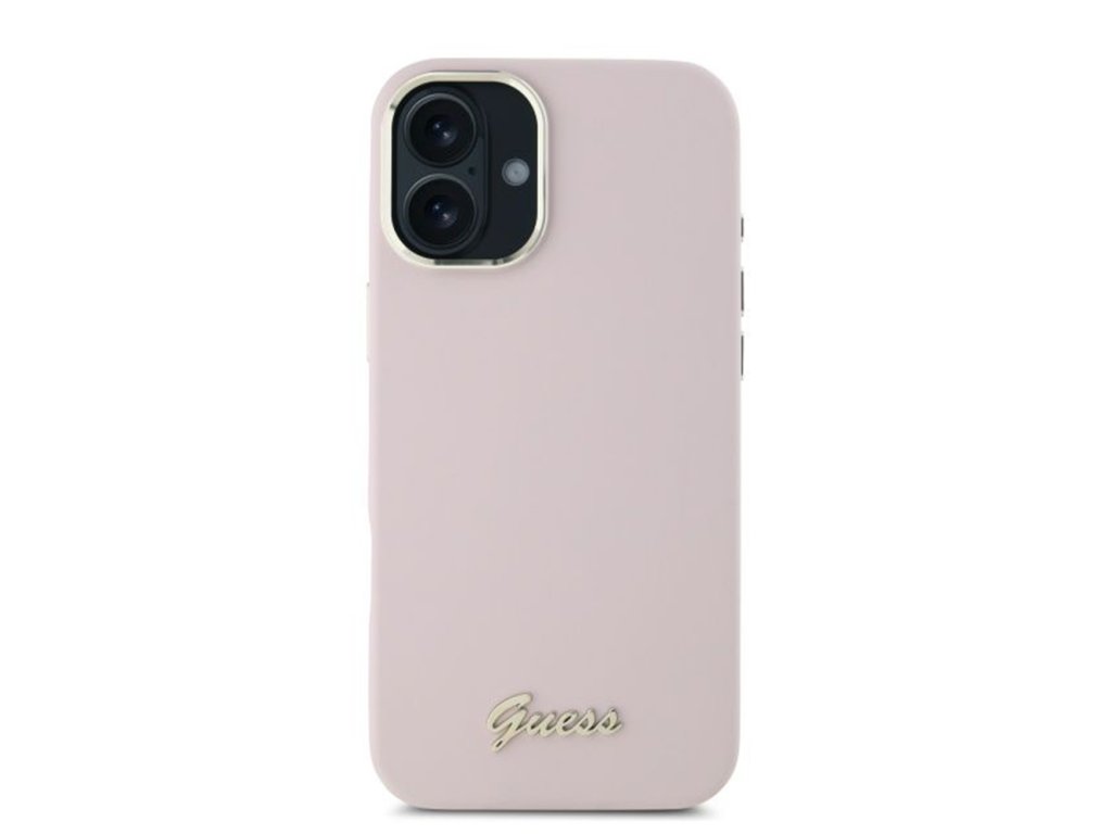Guess Silikonový Nápis Metal Logo & Rám (GUHCP16MSMBSLP) pouzdro pro - iPhone 16 Plus - Růžová