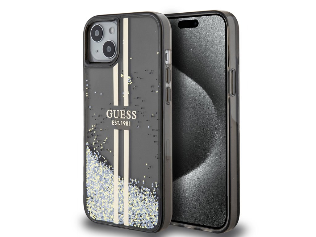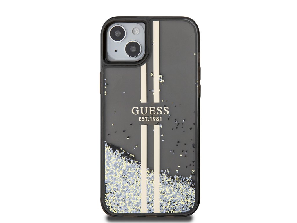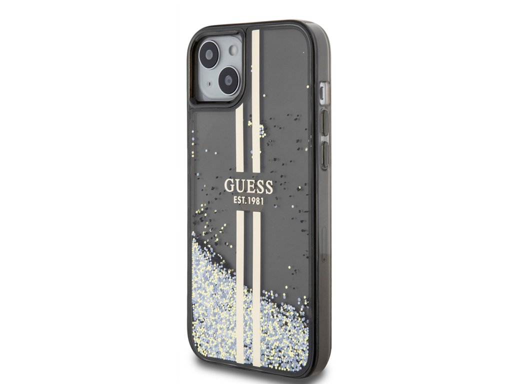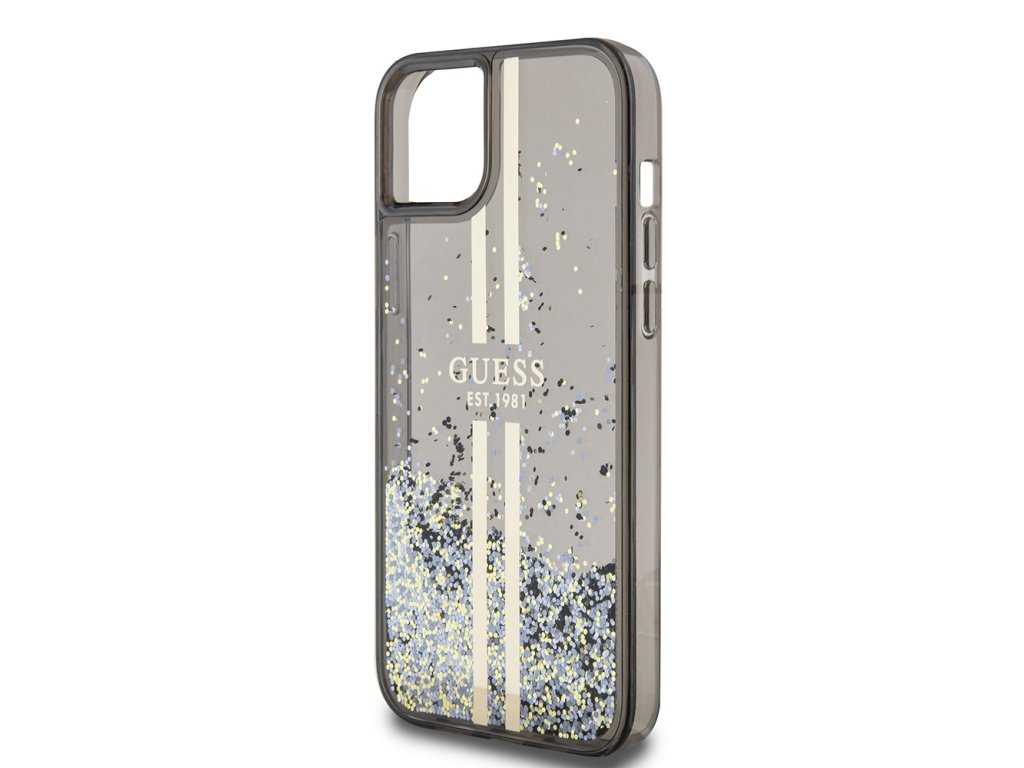 Guess třpytivý kryt se zlatými pruhy a tekutinou pro iPhone 15 Plus (GUHCP15MLFCSEGK) - černý