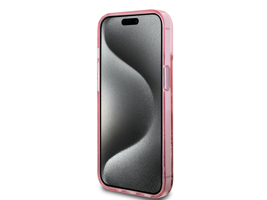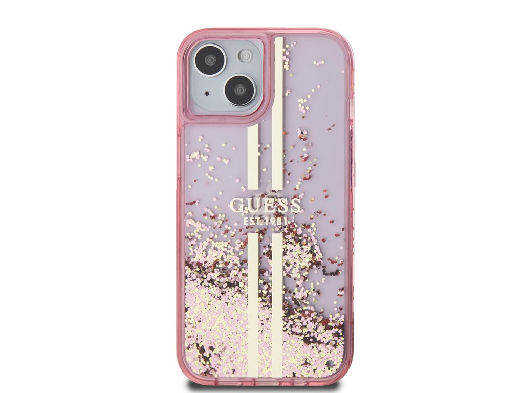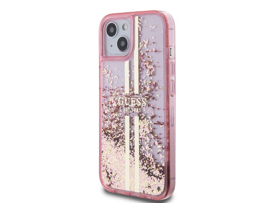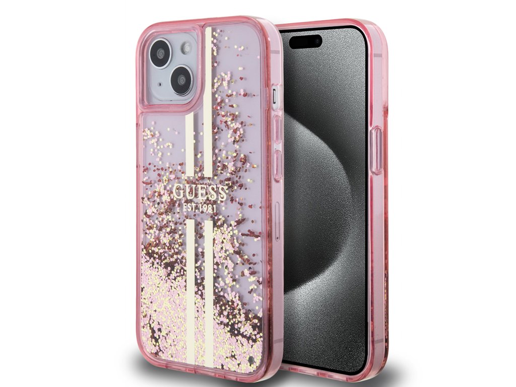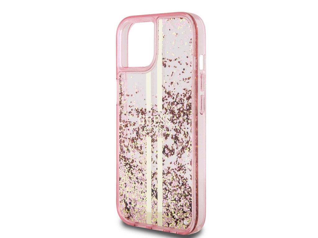 Guess třpytivý kryt se zlatými pruhy a tekutinou pro iPhone 15 Plus (GUHCP15MLFCSEGP) - růžový