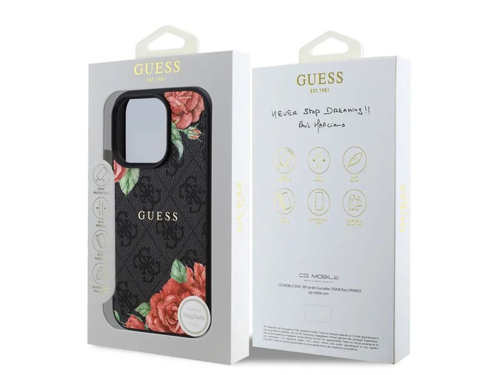 Guess tvrdý obal 4G Flower Print MagSafe (GUHMP16LP4ROPEMCK) - iPhone 16 Pro - Černý