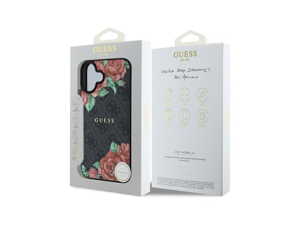 Guess tvrdý obal 4G Flower Print MagSafe (GUHMP16SP4ROPEMCK) - iPhone 16 - Černý