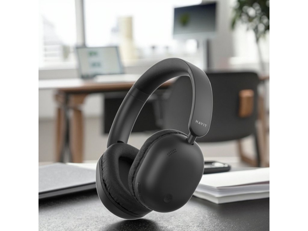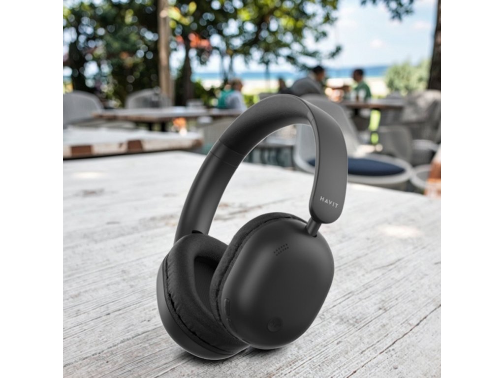 Havit - Bezdrátová sluchátka, BLE V5.4, AUX, ovládání tlačítky, Hi-Res Audio, mikrofon, celodenní baterie, 300mAh - černé