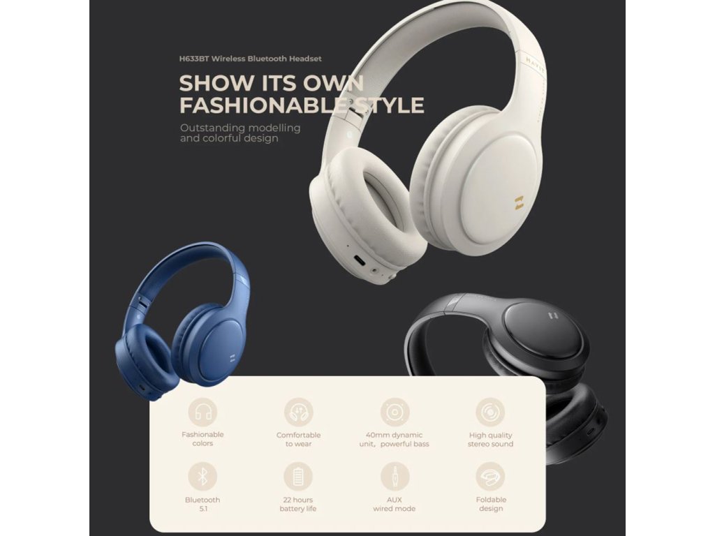 Havit - Bezdrátová sluchátka, mikrofon, Bluetooth 5.1, skládací, ovládání tlačítky, AUX, USB-C, 350mAh - modré