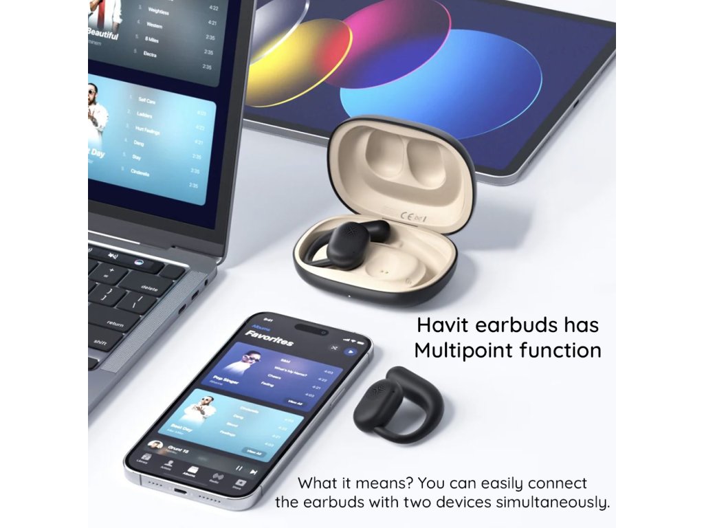 Havit bezdrátová sluchátka (OWS914) – TWS, Bluetooth 5.3, mikrofon, ENC, USB-C, 500mAh, černá