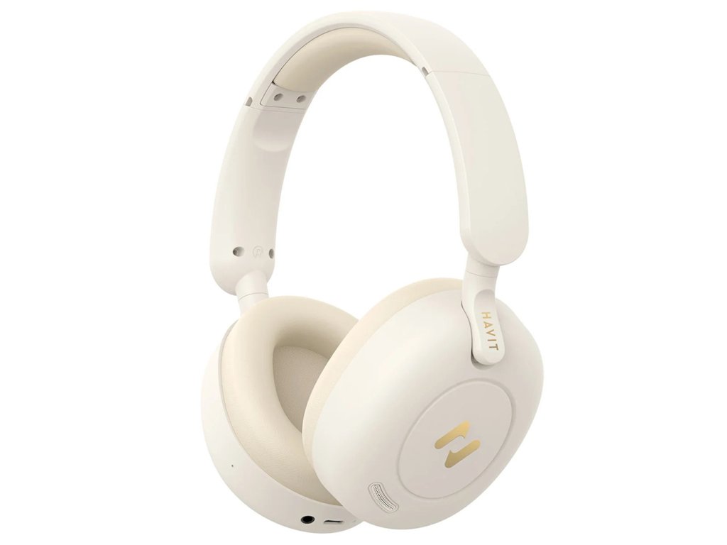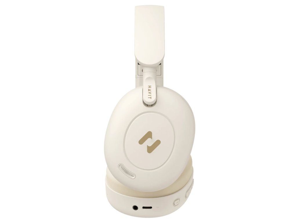 Havit - Bezdrátová sluchátka, pouzdro, Bluetooth 5.3, potlačení hluku, Multipoint, Hi-Res, 700mAh - béžové