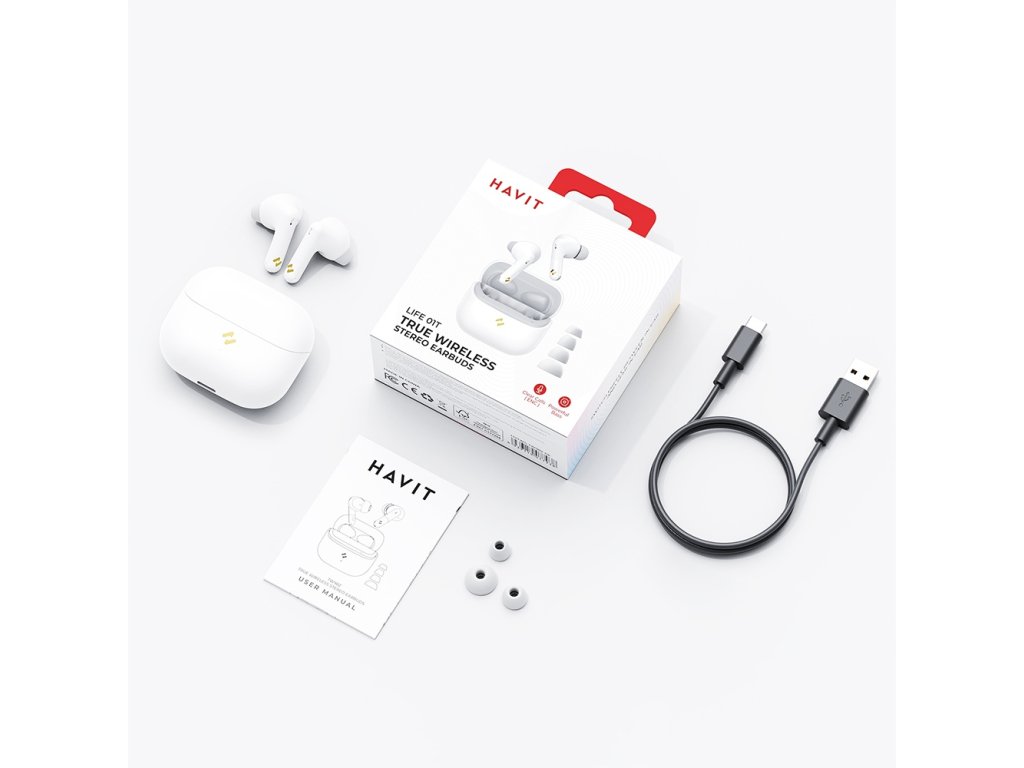 Havit bezdrátová sluchátka (TW982) – TWS, Bluetooth 5.4, mikrofon, ENC, USB-C, 400mAh, růžové