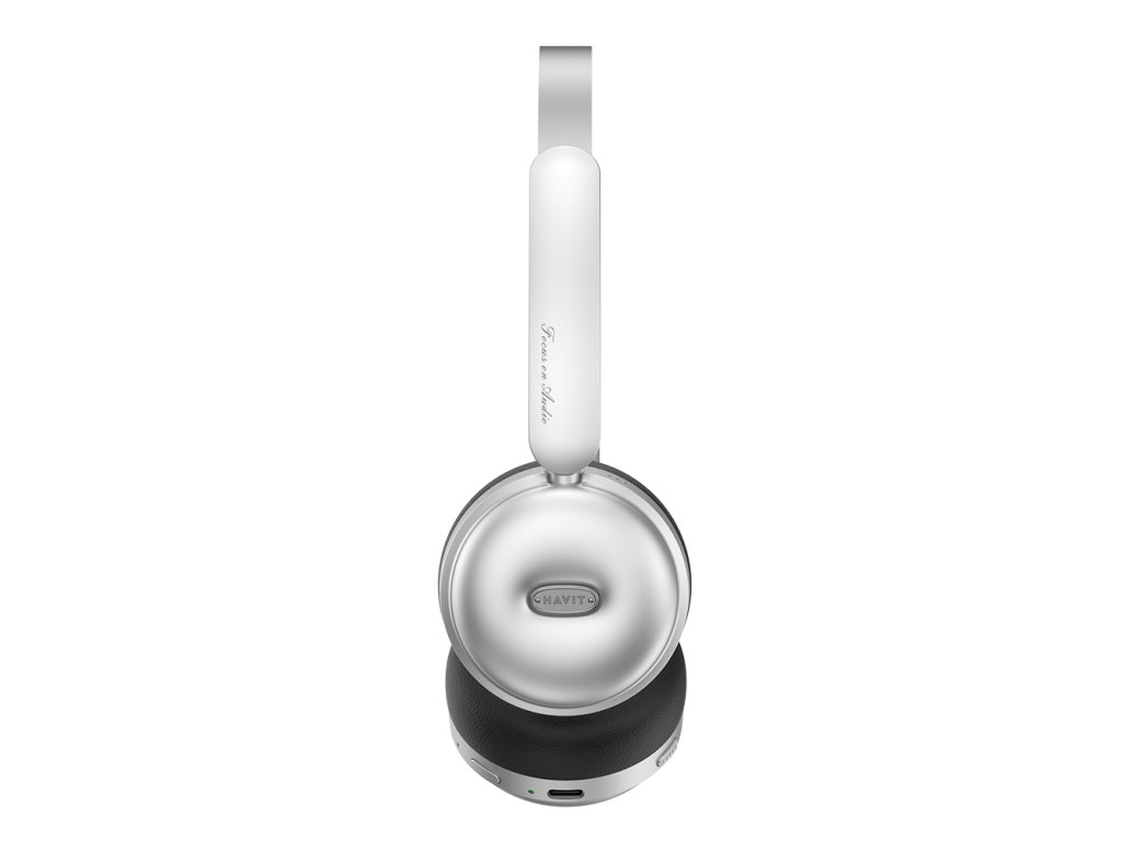 Havit - Bezdrátová sluchátka na uši, Bluetooth 5.4, 400mAh, USB-C - stříbrné/černé