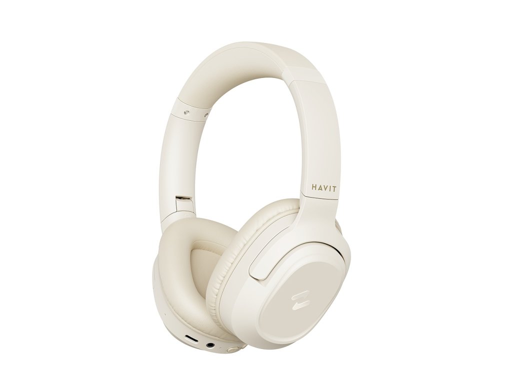 Havit - Bezdrátová sluchátka na uši, Bluetooth 5.4, potlačení hluku, skládací, 400mAh, USB-C - béžové