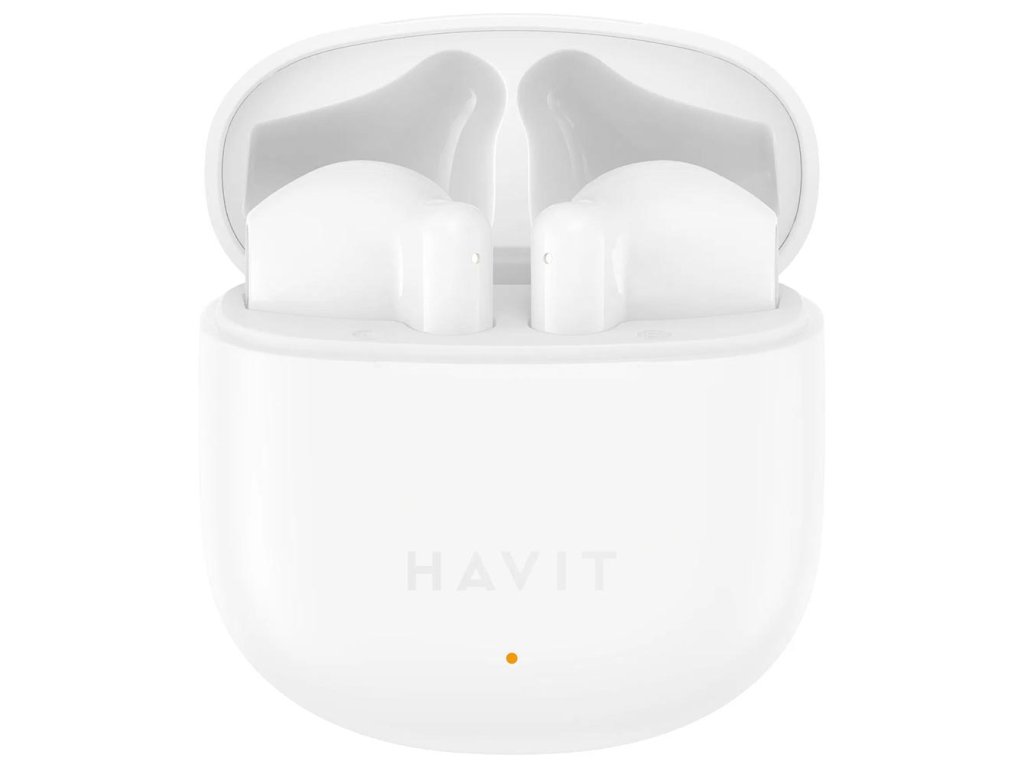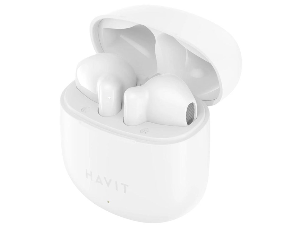 Havit - Bezdrátová sluchátka TW976 - Bluetooth 5.3, USB-C, TWS, mikrofon, 300 mAh - bílá