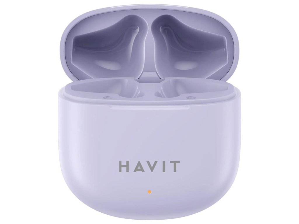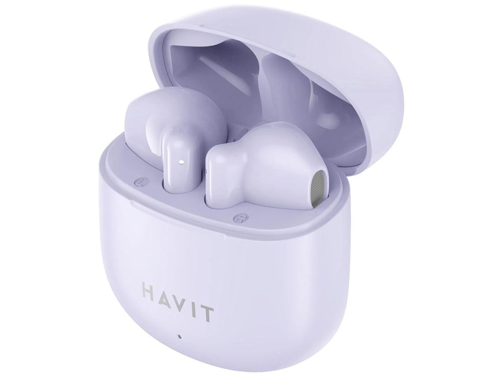 Havit - Bezdrátová sluchátka TW976 - Bluetooth 5.3, USB-C, TWS, mikrofon, 300 mAh - fialové