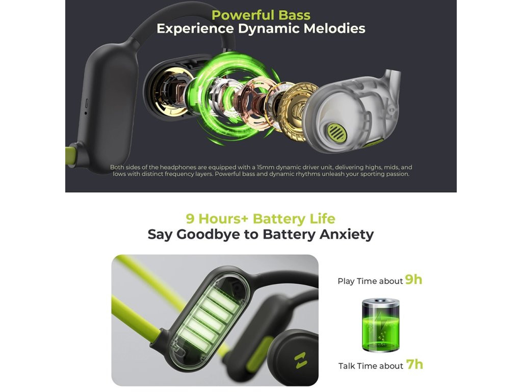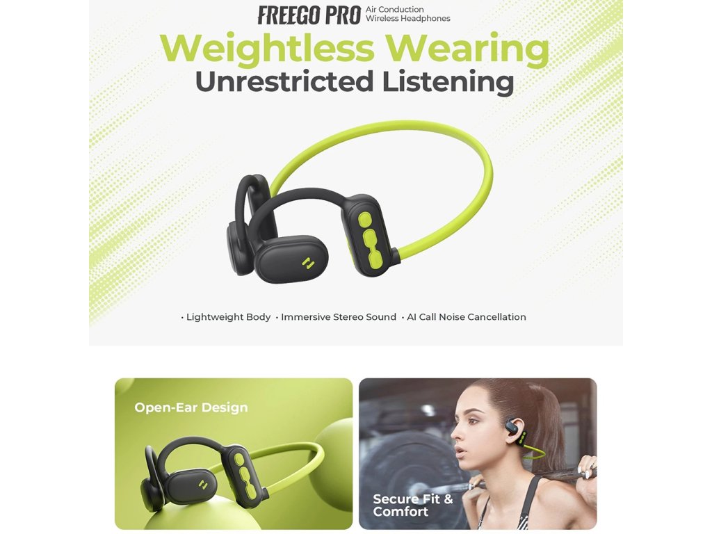 Havit - Bluetooth sluchátka, open-ear (vnější přenos zvuku), Bluetooth 5.3, potlačení hluku, USB-C, 110mAh - zelené